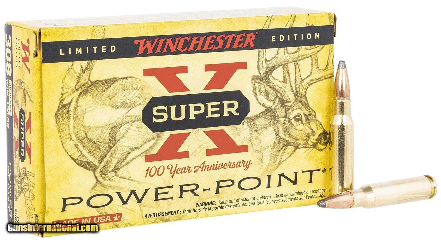 Description: IN STOCK CASE QUANITY Winchester Ammunition Super-X, Power Point, 308 Winchester, 150 Grain, Soft Point, 20 Round Box, 100 Year Anniversary X308100