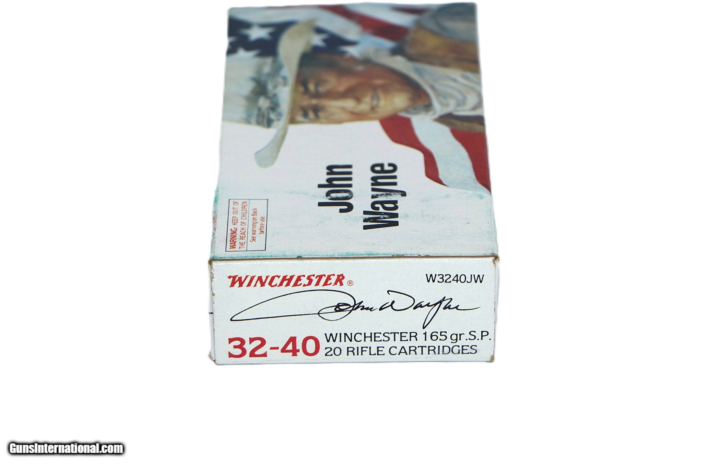 Description: Winchester, John Wayne Commemorative, 32-40 Winchester, 165 Grain, Soft Point, Partial 16 Rounds (NOT 18). W3240JW SOLD Rifle Caliber: .32-40 Winchester |