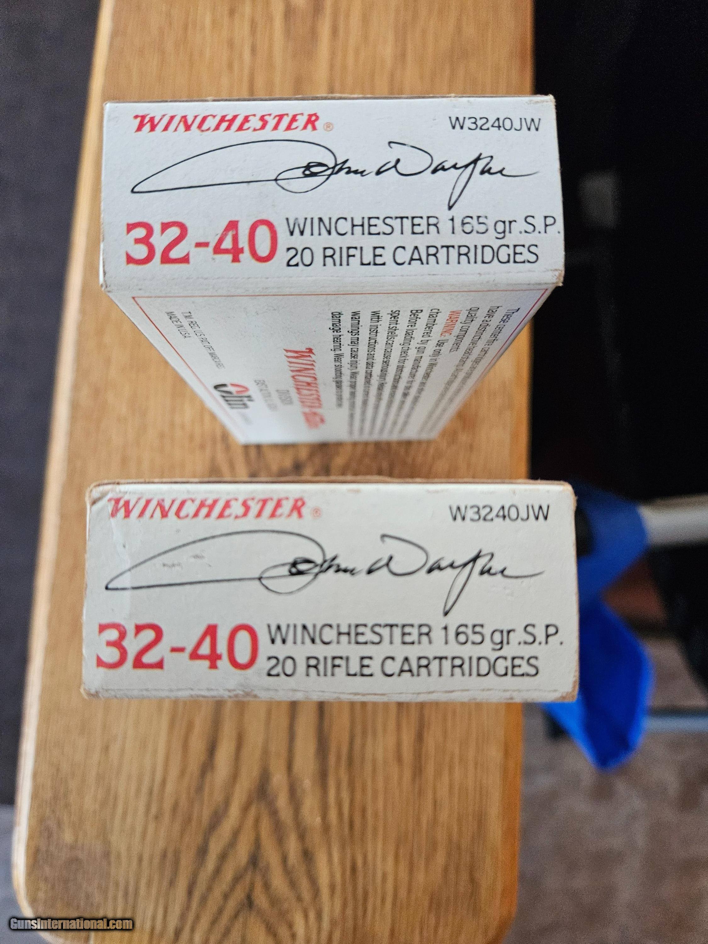 Description: Two boxes of original Winchester 32-40 John Wayne cartridges. $15 shipping. Buy one or both,$100 each. Ask Me about my other 32-40 ammo and other calibers. SOLD |