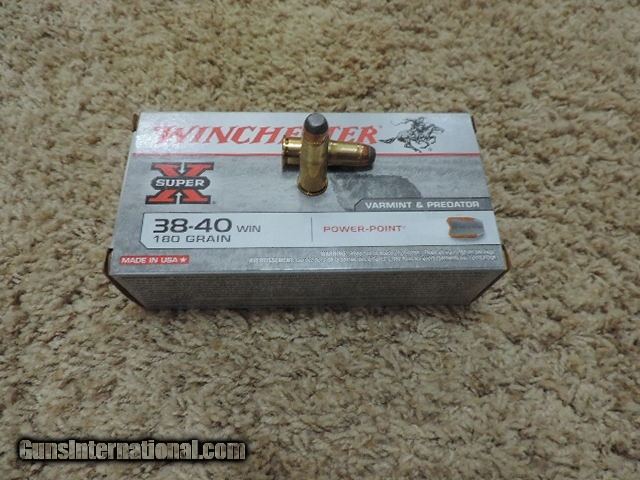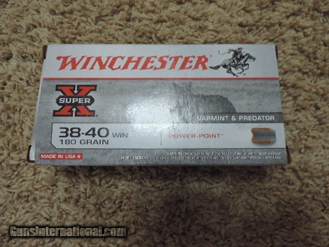 Description: 180 GRAIN, POWER POINT,50RD BOX, FIVE 5 BOXES, $69.00 / BOX, TOTAL = $345.00 FREE SHIPPING NO CREDIT CARD FEES SOLD Rifle Caliber: .38-40 Winchester Handgun Caliber: .38-40 Winchester (.38 WCF) |