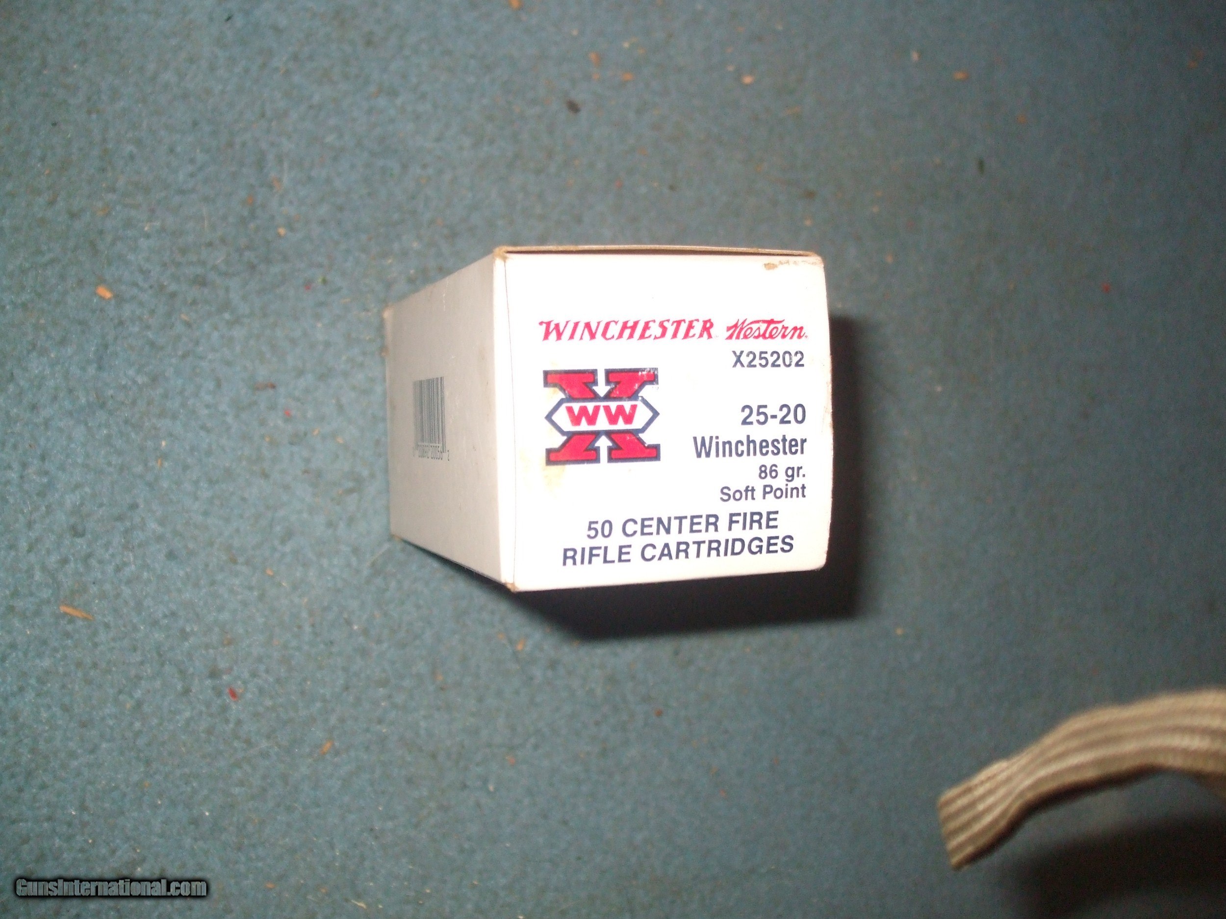 Description: Winchester-Western 25-20Win 86gr soft point. White box Super X WW logo. Full box 50rds. Code X25202. Box excellent ammo excellent. Please note cannot ship to CA, MA, NJ, IL or any other restricted areas. I am located in Delaware and can deliver locally. SOLD Rifle Caliber: .25-20 Winchester |