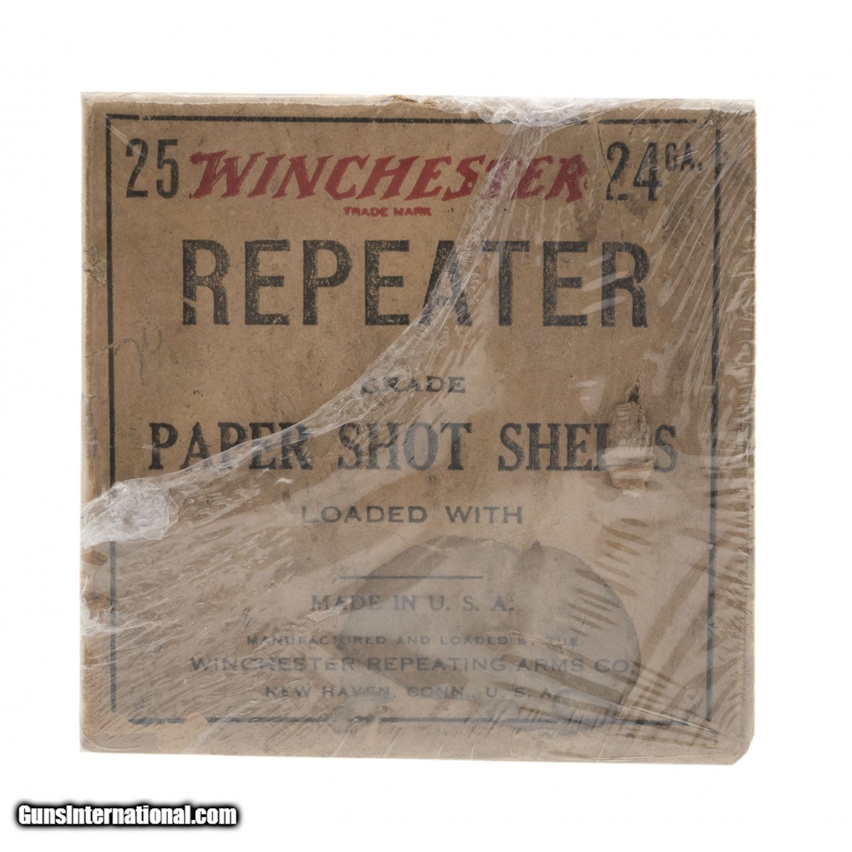 Description: " 24ga. Paper Shot Shells Empty Box for Repeater Shotgun by Winchester. Damaged Empty Box. SOLD |