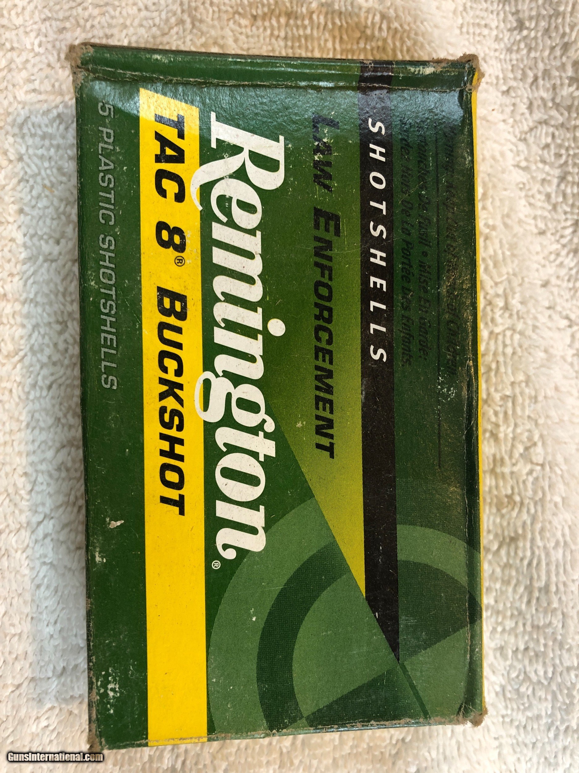 Description: 12 GA 2 3/4 Buckshot Remington TAC 8 - 8 Pellet Condition: Packaging Worn - Ammo Excelent SOLD |