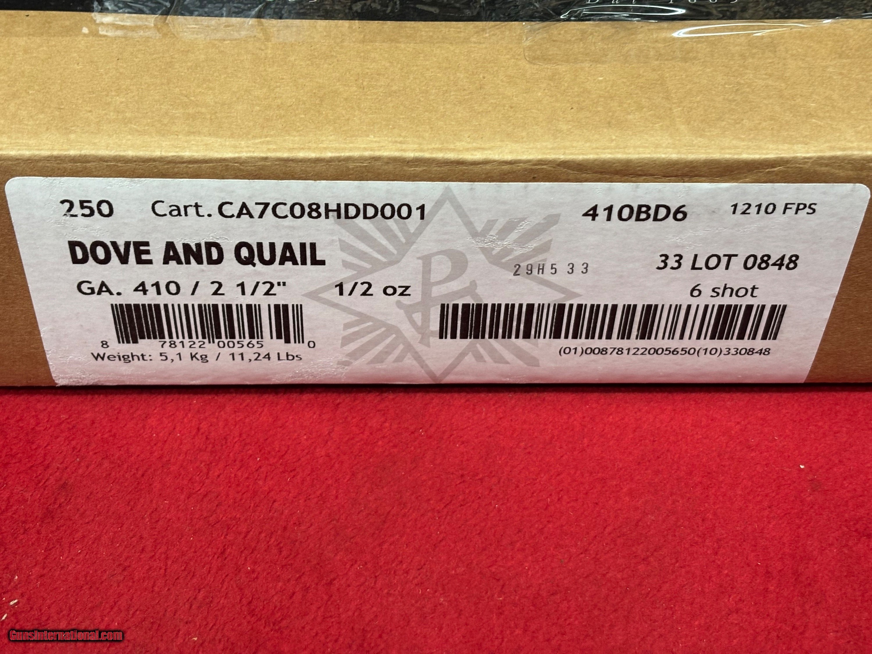 B&P Heavy Dove & Quail .410 GA 2.5" 1/2 oz #6 Shot Shells ...... 250 Rounds