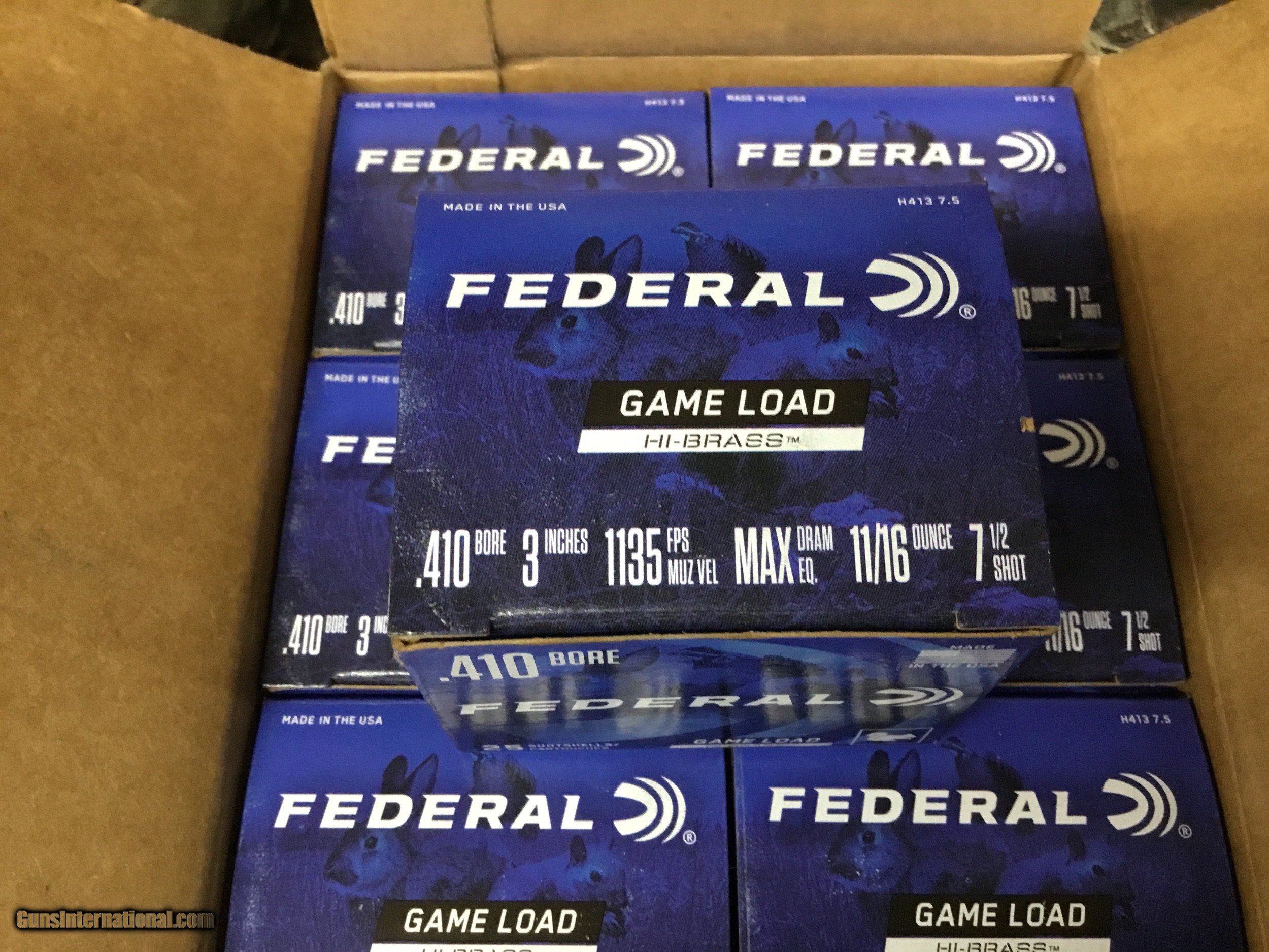 Description: Federal Gameload .410 3" 11/16 oz. #7.5 Shot Shells 4 bxs.........25 rounds each..........100 rounds total $119.00 $21.00 to ship If you are WEST of the Mississippi shipping will be $10.00 extra Thank you for looking at our items. If it is listed on the site, we still have it in the shop. If you wish to buy, hit buy it now and call the shop to pay. We are open Monday thru Friday 10:00am-5:00pm EST ...........Ask for Bree....... (803) 874-1060. Please CALL the shop first if you are in California. You need to verify you can have this weapon, since we DO NOT accept returns from California. NO INTERNATIONAL SALES. SOLD |