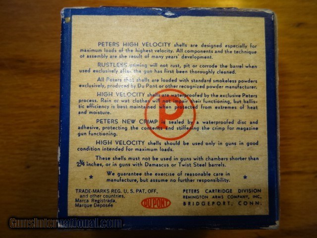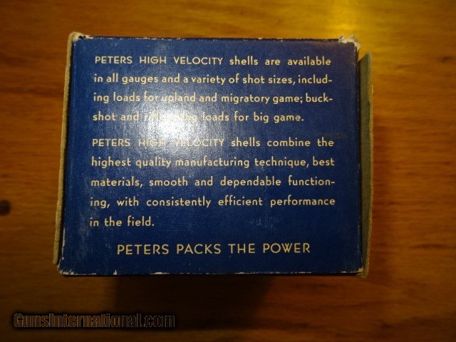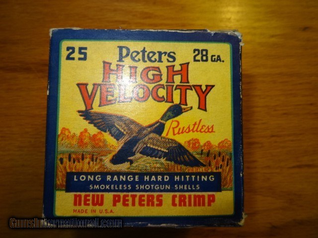Description: Peters 28 Gauge 2 3/4 Inch Length Flying Duck Vintage Box - Full Box 2 1/4 - 3/4 6 Shot Additional cost for shipping $15.00 For further information please call our office at 716-941-3946. SOLD |