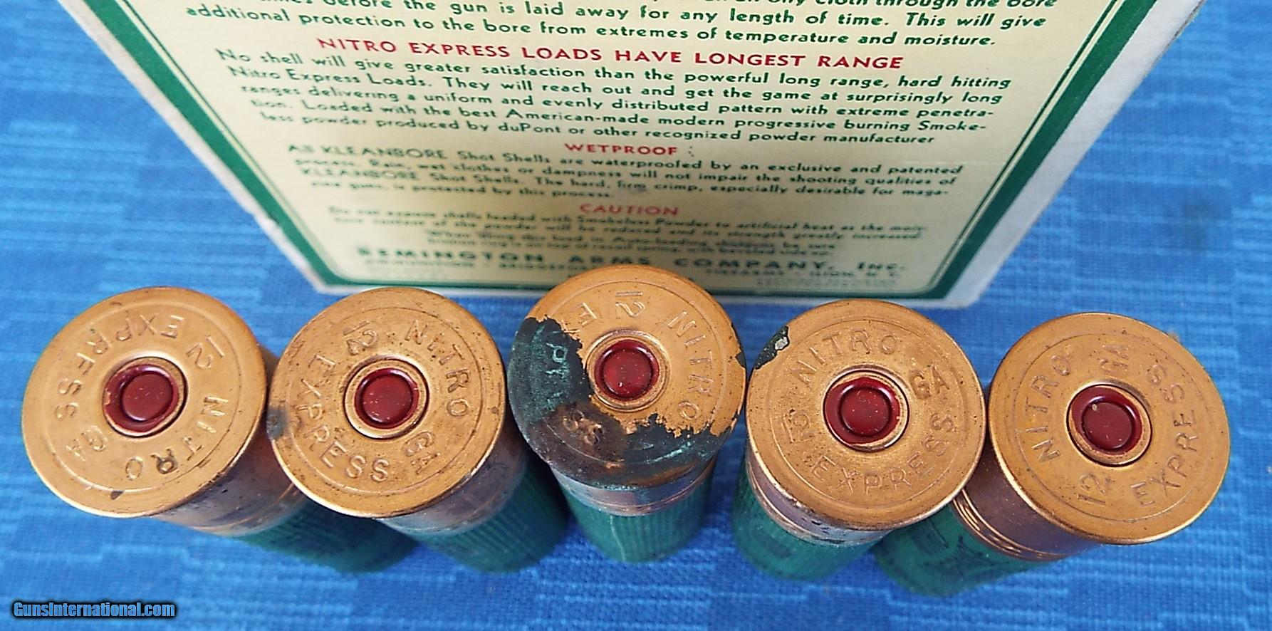 Description: FOR SALE: VINTAGE (PRE-WWII) FULL BOX OF REMINGTON /DUPONT 12 GA SHOT SHELLS 00BUCK (9PELLETS) 2 3/4"SHELLS, EXTRA LONG RANGE WETPROOF.MARKED *U.S.PROPERTY* BOX IS IN EXCELLENT CONDITION... VERY LIGHT SOILING VERY MONOR EDGEWEAR,FIRM NO TEARS, BRIGHT COLORING, GREAT GRAPHICS, VERY LEGIBLE. AMMO IS ALSO IN EXCELLENT OVERALL CONDITION.... ONLY ONE SHELL APPEARS DISCOLORED ON COPPER TOP , NO BULGES. PLEASE VIEW ALL PICTURES AS THEY ARE PART OF THE DESCRIPTION. SUPER CLEAN EXAMPLE THAT WOULD BE A GREAT ADDITION TO ANY COLLECTION!! SHIPPING IS $16 FLAT FEE, LOWER 48 STATES ONLY . 6.5% SALES TAX ADDED ON FLORIDA SALES. PLEASE ASSURE US YOU ARE OVER 18 YEARS OF AGE, AND LEGALLY ABLE TO PURCHASE & POSSESS THIS AMMO.ABIDE BY ALL LOCAL LAWS AND REGULATIONS. THANKS FOR LOOKING!! SOLD |