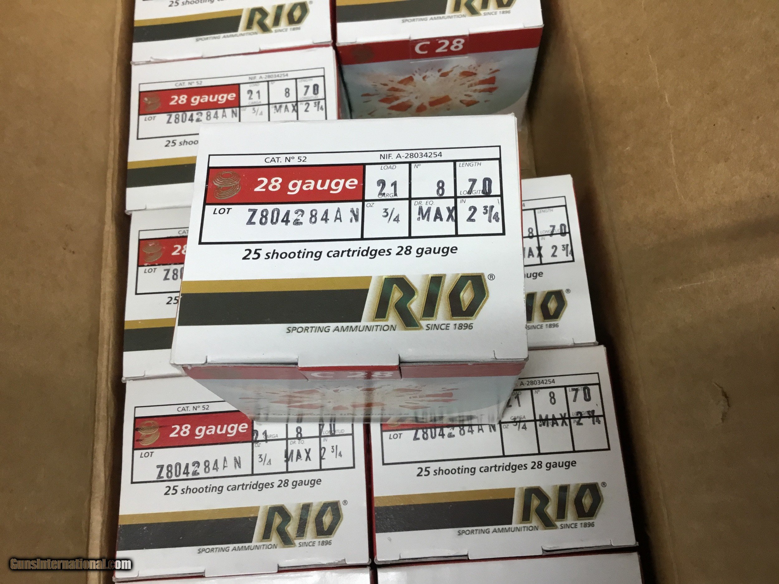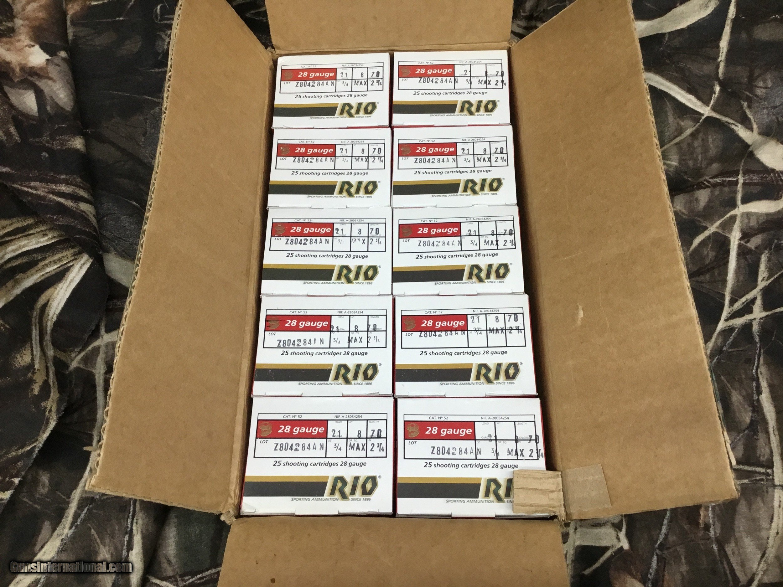 Description: Rio 28ga 2.75” 3/4oz #8 Shot Shells 10 boxes ............25 rounds each …………..250 rounds total $129.00 $26.00 to ship Thank you for looking at our items. If it is listed on the site, we still have it in the shop. If you wish to buy, hit buy it now and call the shop to pay. Ask for Bree....... (803) 874-1060. If you are WEST of the Mississippi add $10 more to shipping cost. NO sales to California EXCEPT under certain conditions. If you are in California, please DO NOT push buy it now and just CALL the shop first. ...... (803) 874-1060 NO INTERNATIONAL SALES. SOLD |