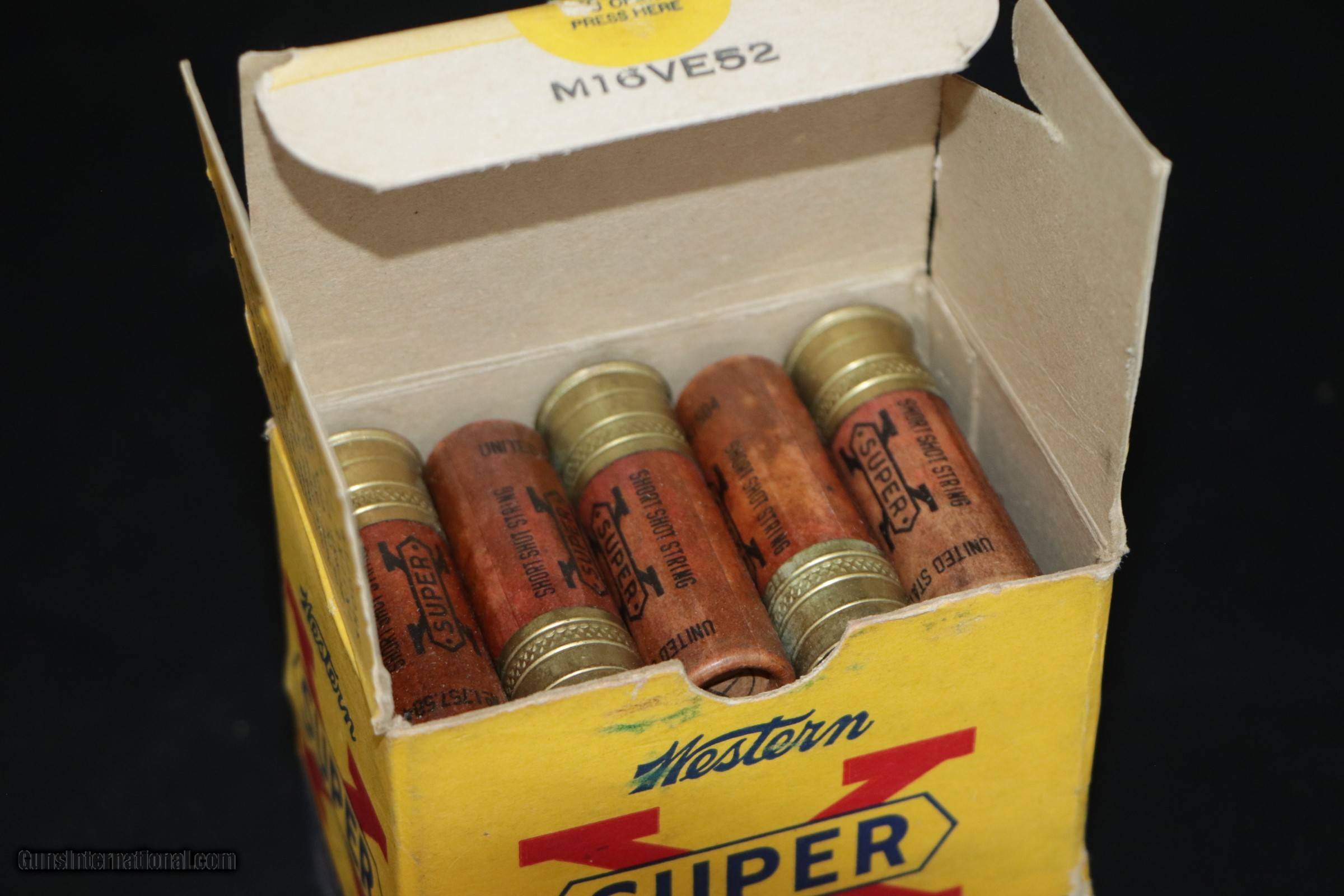 Description: estern, Super X, 16ga., 1pc., Full, shot size 4, 2 9/16'', multi-colored box, box has some light edge wear with great color, shells are excellent. Add $16.50 S+H SOLD Shotgun Gauge: 16 Gauge |