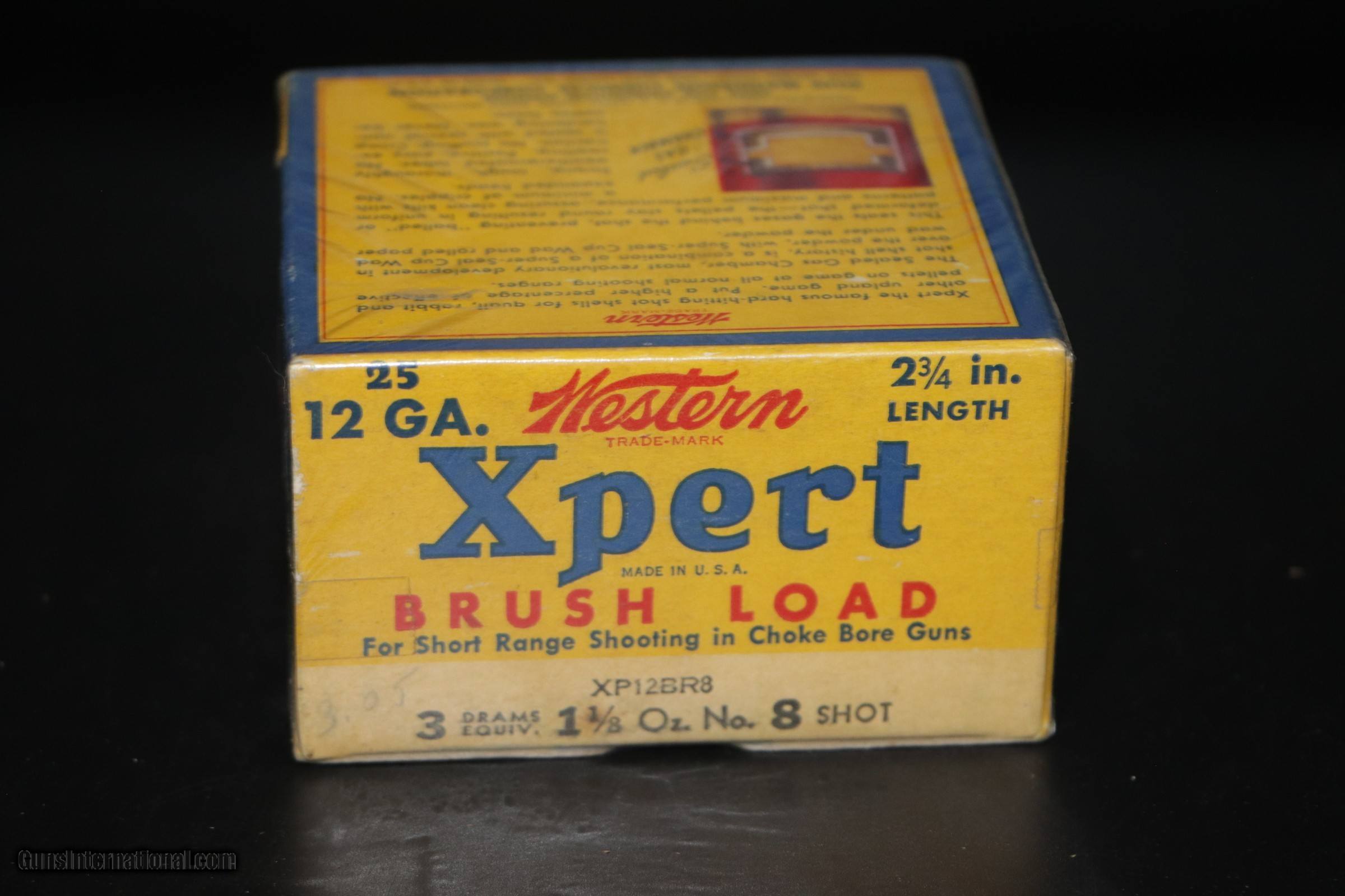 Description: Western Xpert, 12 Gauge, Brush Loads, 2-3/4" , Shot Size 8. Box and Ammo excelllent. Add $15 S+H SOLD Shotgun Gauge: 12 Gauge
