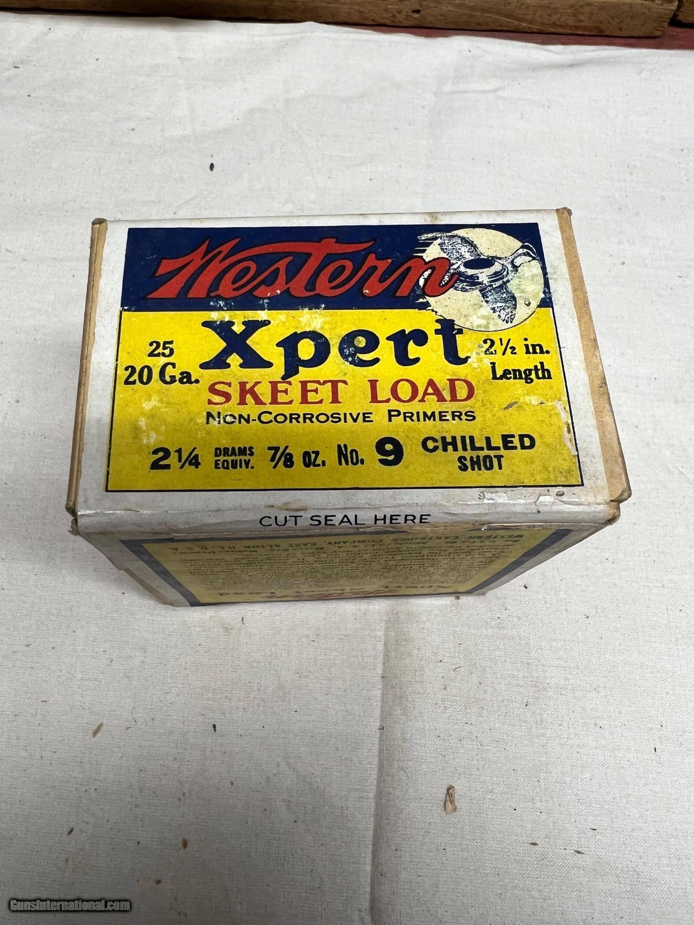 Description: Excellent unopened box of 20 gauge shotgun shells, Xpert Skeet Load, No. 9 chilled shot box in very good to excellent condition seal intact SOLD Shotgun Gauge: 20 Gauge |