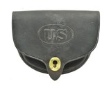 Model 1874 Dyer Cartridge Box .45-70 This is a great example of a model 1874 Dyer cartridge box made by Rock Island Arsenal. Leather is very good; belt loops are intact.
