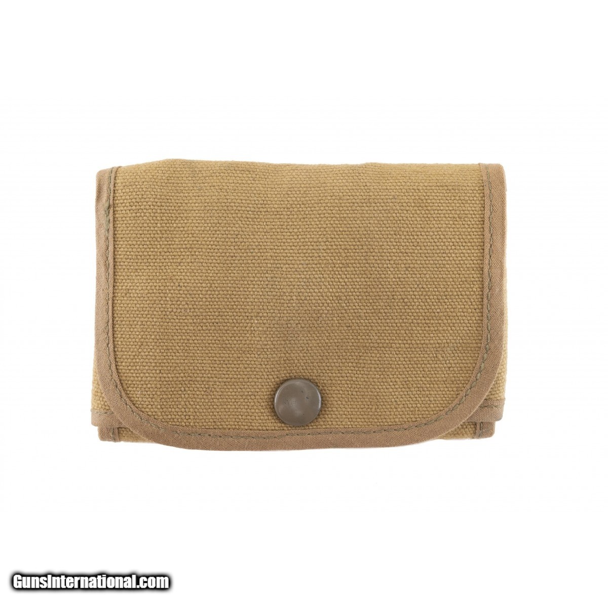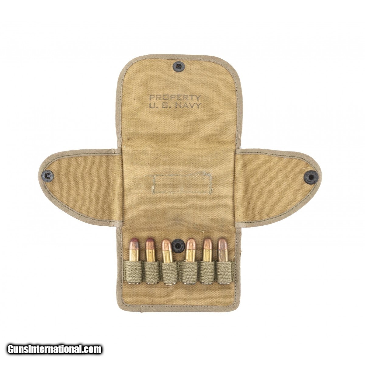 Description: " Scarce WWII Navy issued ammo pouch. Comes with four rounds of ball ammo and two tracer rounds. Inside flap is marked ""Property U.S. Navy"". SOLD |