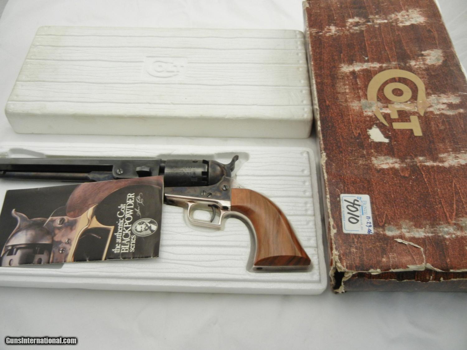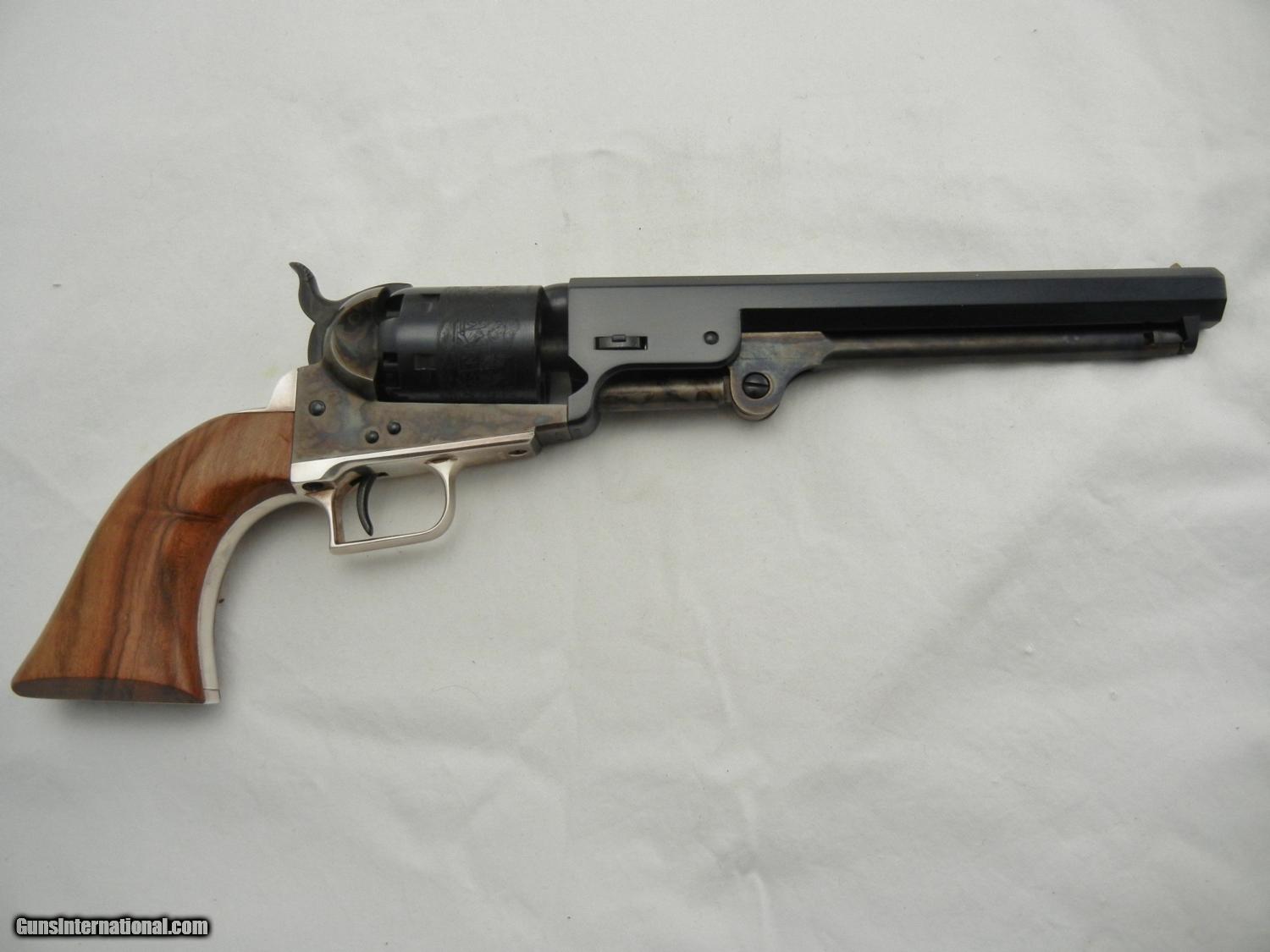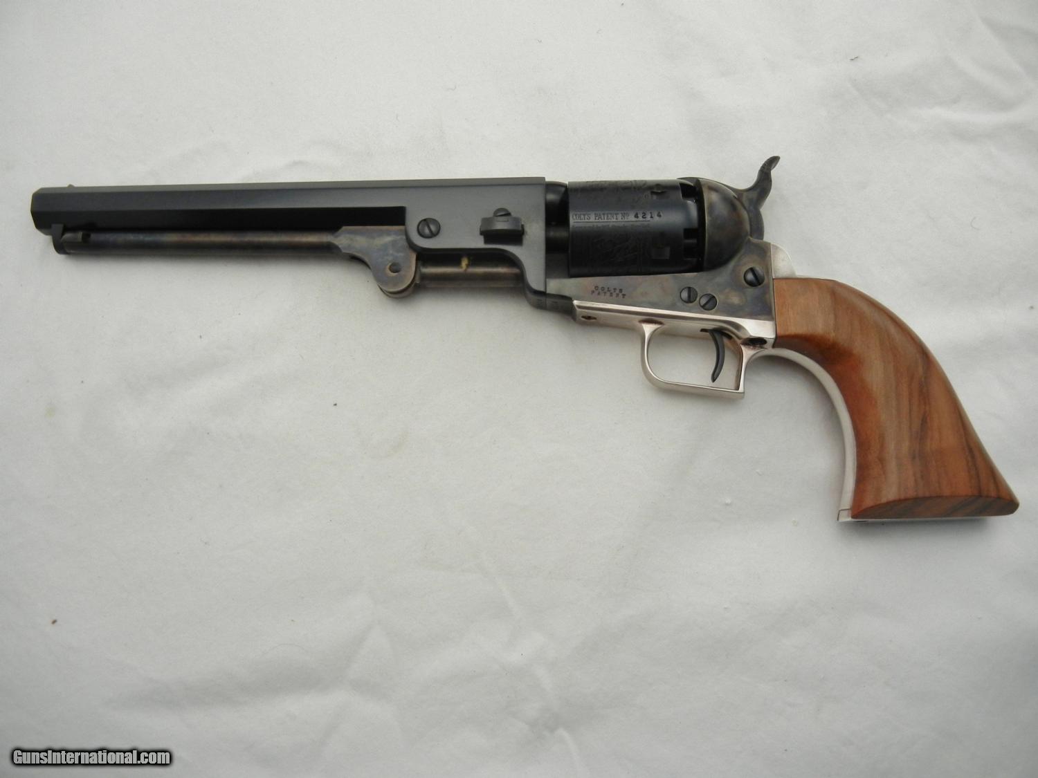 Description: This is a Colt 1851 Navy 36 with a 7 1/2 inch barrel. This gun is 100% new in the box. The end label is missing. Serial # is 42xx. Buyer pays 30.00 shipping. Must be 21 and send copy of DL with payment. Thank you. SOLD |
