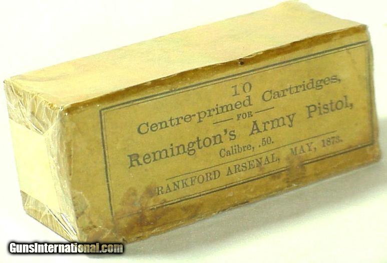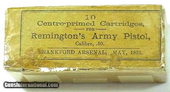 BOX of 10 CENTRE-PRIMED REMINGTON ARMY PISTOL .50 Cal. CARTRIDGES P.A. 1873