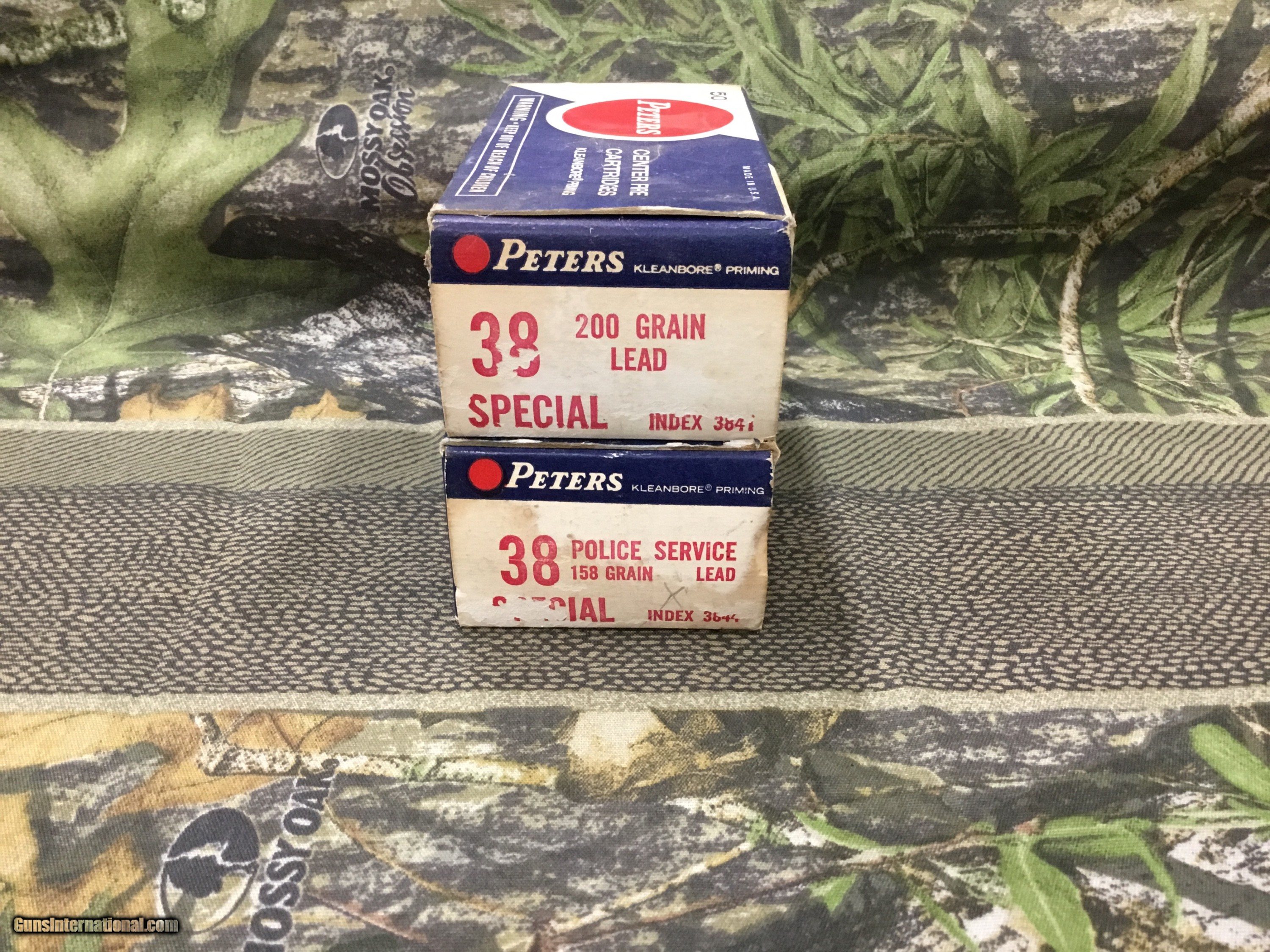 Description: TWO WHOLE BOXES 50 RDS EACH..... ONE IS 158 GRAIN AND ONE IS 200 GRAIN......200 GRAIN IS VERY RARE BOXES ARE SUPER GOOD.....ALL THE FLAPS 1960--63 ERA $249.00 SHIPPED If you are WEST of the Mississippi shipping will be $10.00 extra Thank you for looking at our items. If it is listed on the site, we still have it in the shop. If you wish to buy, hit buy it now and call the shop to pay. We are open Monday thru Friday 10:00am-5:00pm EST ...........Ask for Bree....... (803) 874-1060. Please CALL the shop first if you are in California. You need to verify you can have this weapon, since we DO NOT accept returns from California. NO INTERNATIONAL SALES. SOLD Handgun Caliber: .38 Special |