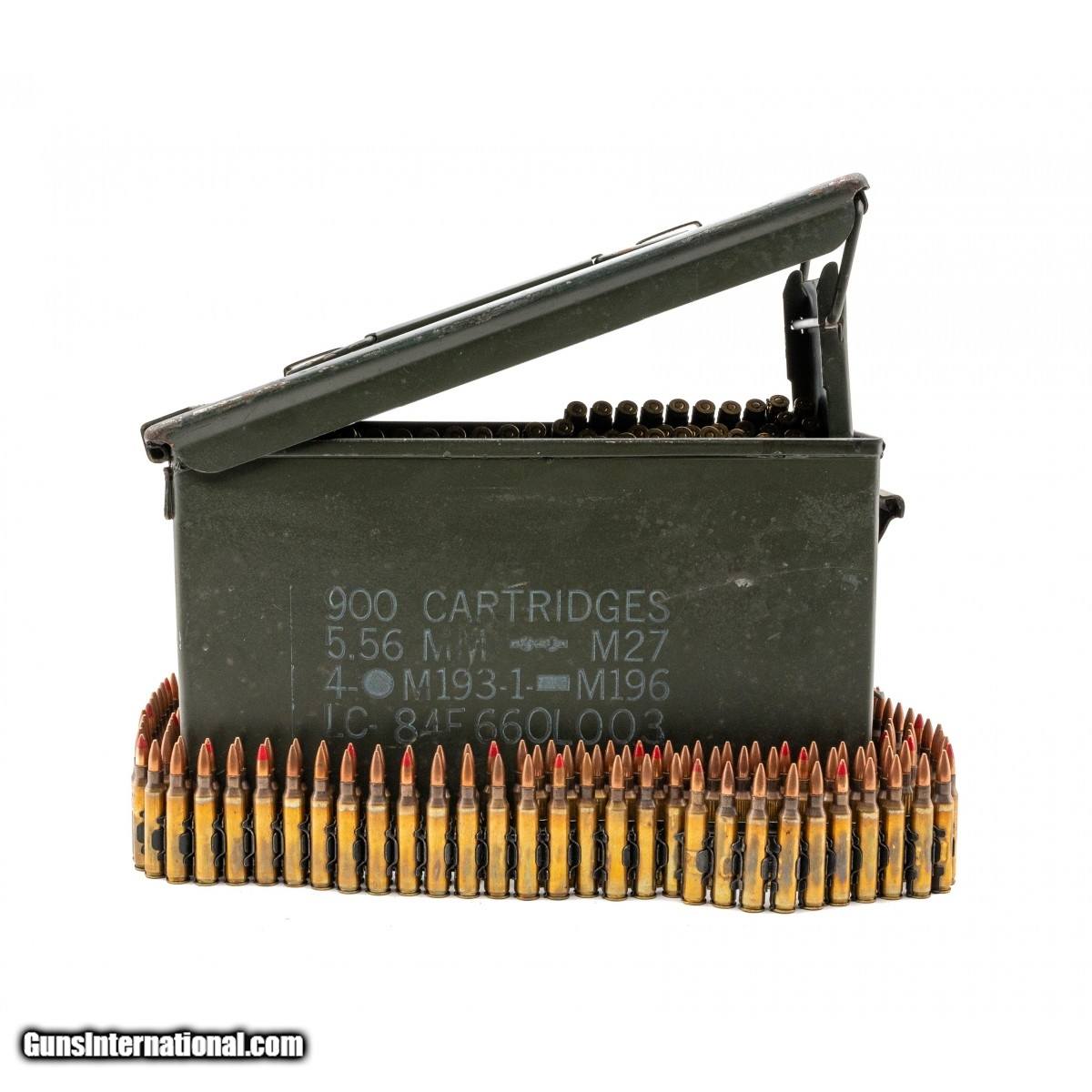 Two linked belts of 5.56, 450 rounds each belt. Belt is linked with M193 and every 5th round is a tracer. Comes with Ammo can marked Stoner Mark 23-0.