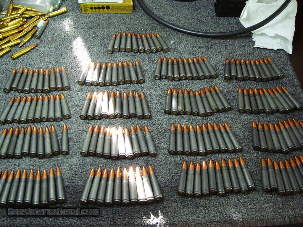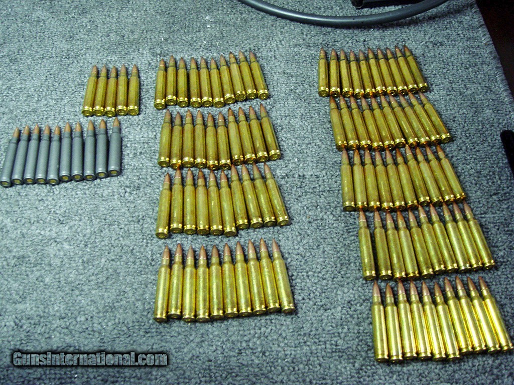 Description: 4 - 5.56 x 45 mm FMJ Ball Brass M193 x20 rnds per white box 2 - 7.62 x 39 mm HP 122 Gr Steel Russian TulAmmo 40 rnds per box 95 rnds .223 FMJ Ball Brass 170 rnds 7.62 x 39 mm HP Steel 13 rnds 7.62 mm OJP S- Patronen / GM 1 1960 (30-06 Austrian) 1 M1 Garand Enbloc clip w/ 8rnds 5 rnds .30-06 BLACK TIP AP AMMO 1 - Winchester Super-X 20ga 3 buck 1 - Winchester Super-X 12ga 00 buck Magnum Buckshot 2 - Winchester 30 Carbine 136 rnds Military 30 Carbine with 8 stripper clips 2 - Lellier & Bellot 30 Carbine 4 - Hansen 30 Carbine 1 - Federal 308 Win 200 rnds .223 24 rnds 9mm sub-sonic SOLD |