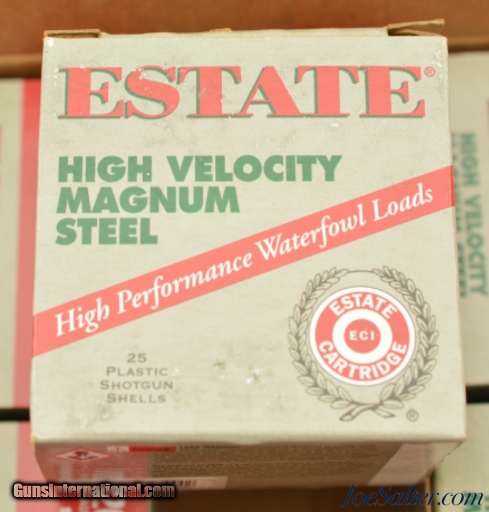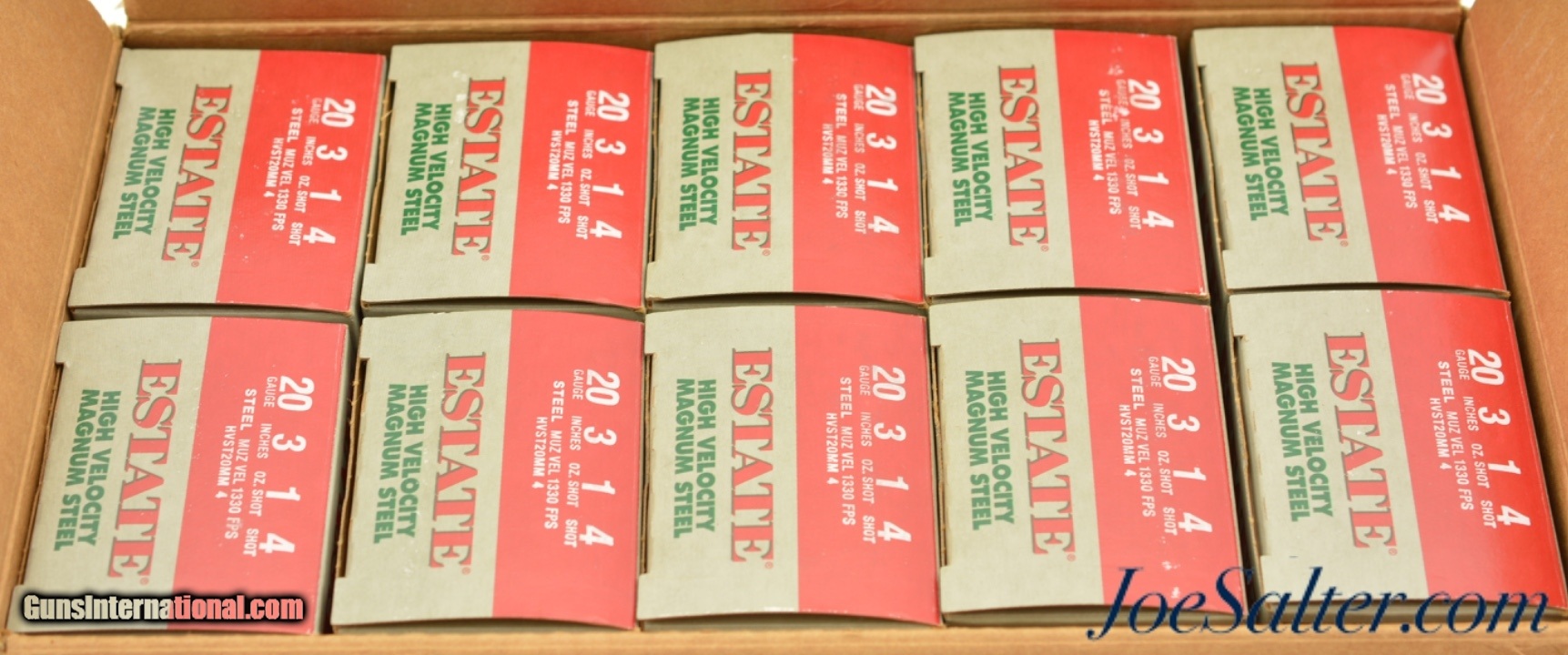 Description: These are 250 NOS Estate 20ga 3" 1oz #4 shot Magnum Steel Shotshells with a velocity of 1330FPS. High performance Waterfowl loads SOLD |