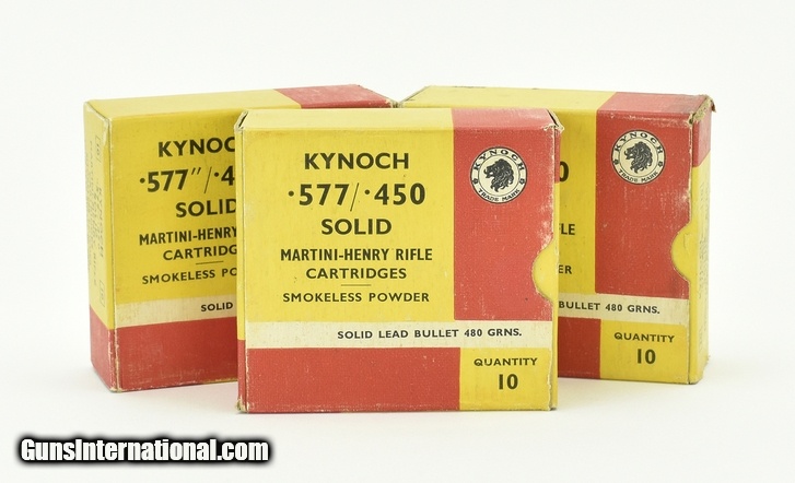 Description: Kynoch 577”/450” Solid Martini-Henry Smokeless Powder Cartridges 10 Count. Price per box. SOLD |