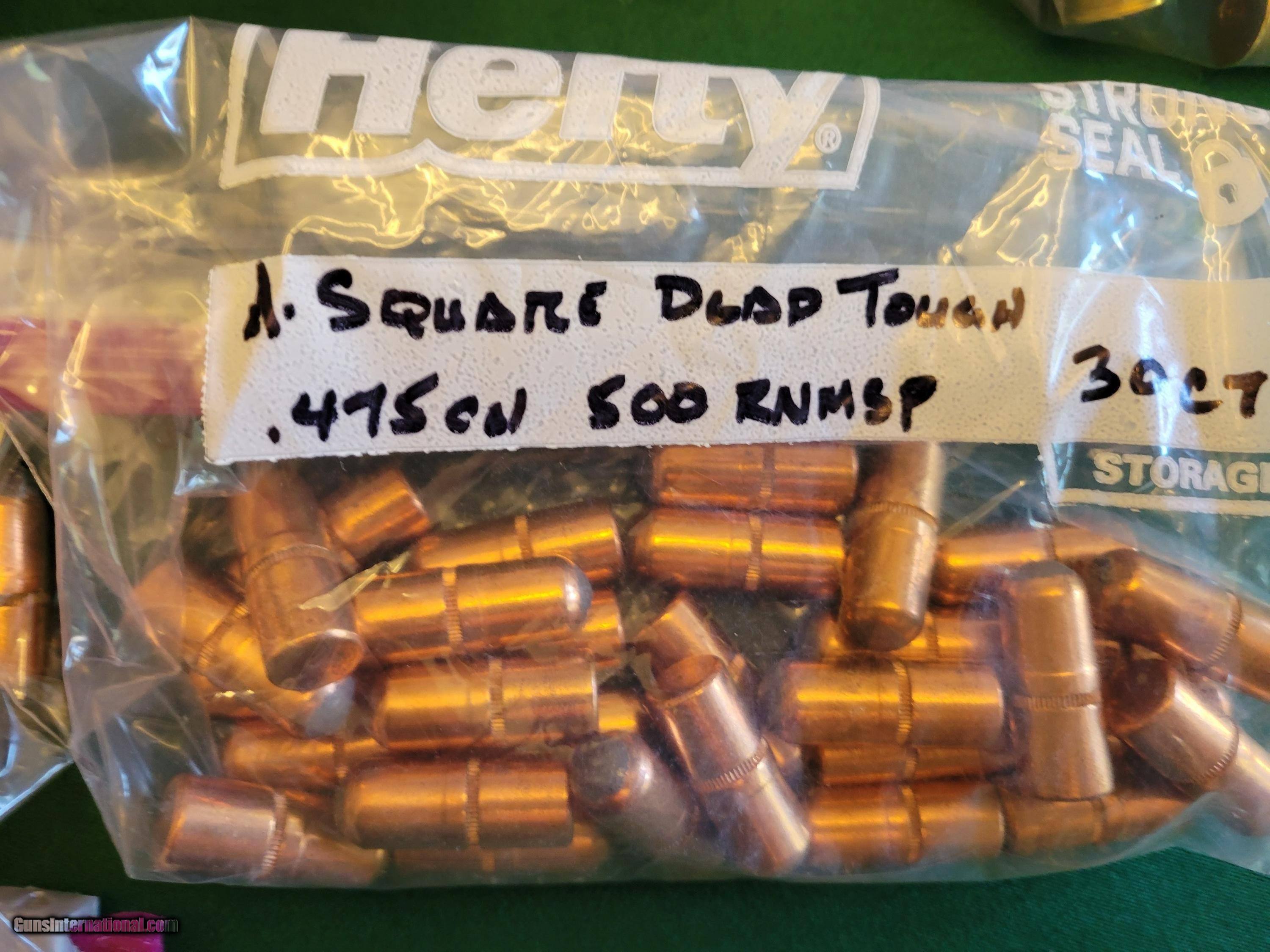 Description: Very nice group of 470 Nitro Express items. Included are: RCBS custom die set and shellholder Bell brass - 16 new and 10 fired A Square bullets - 30 500 grain Dead Tough, 28 500 grain Lion Load, 36 500 grain solide Hornady bullets - 1 box of 50 DGS 500 grain Loaded ammon - all Bell brass, 10 with A Square 500 grain Lion Loads, 10 with A Square 500 grain Dead Tough, and 10 with A Square 500 grain Round Nose Probably everthing you need to shoot that 470 double. SOLD to William Please review the photos as to condition. No international sales. Thanks for your consideration. SOLD Rifle Caliber: .470 Nitro Express |