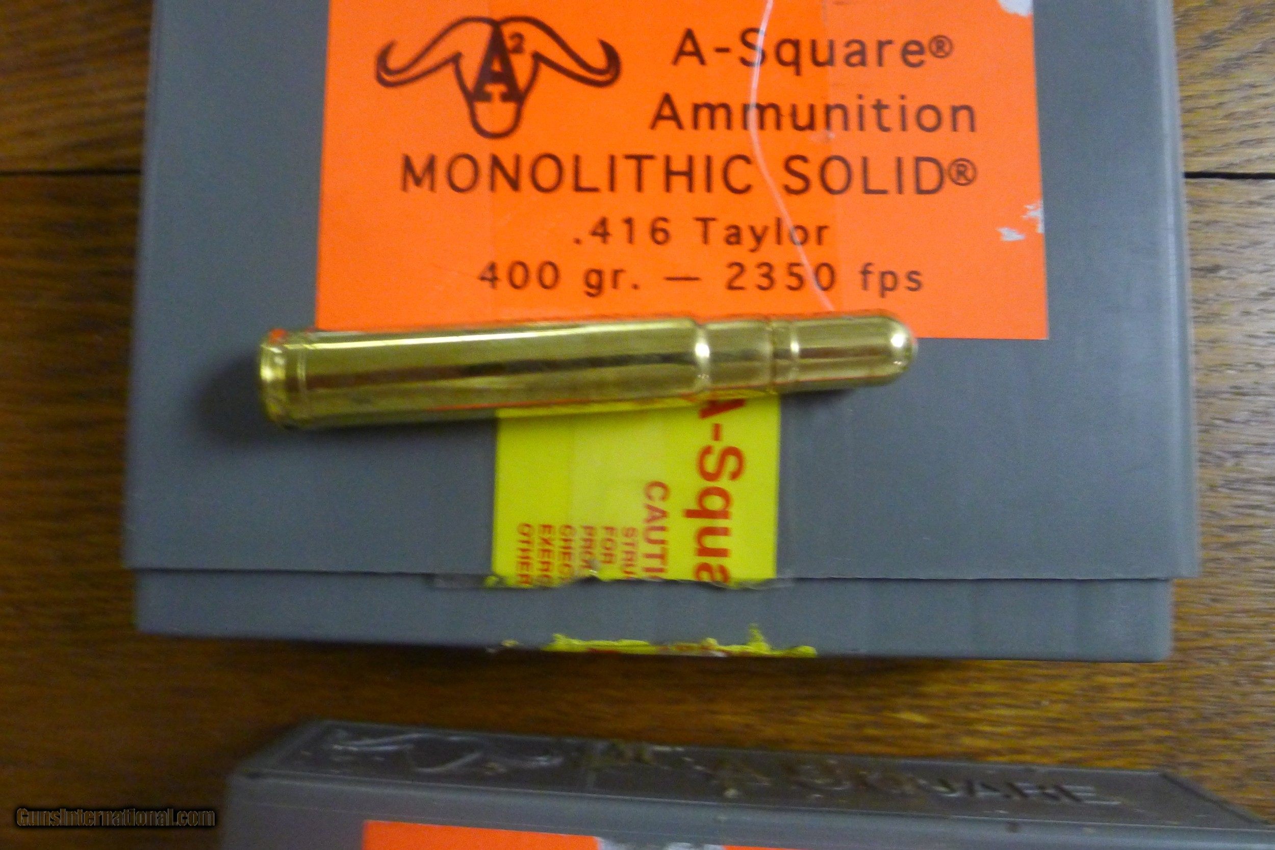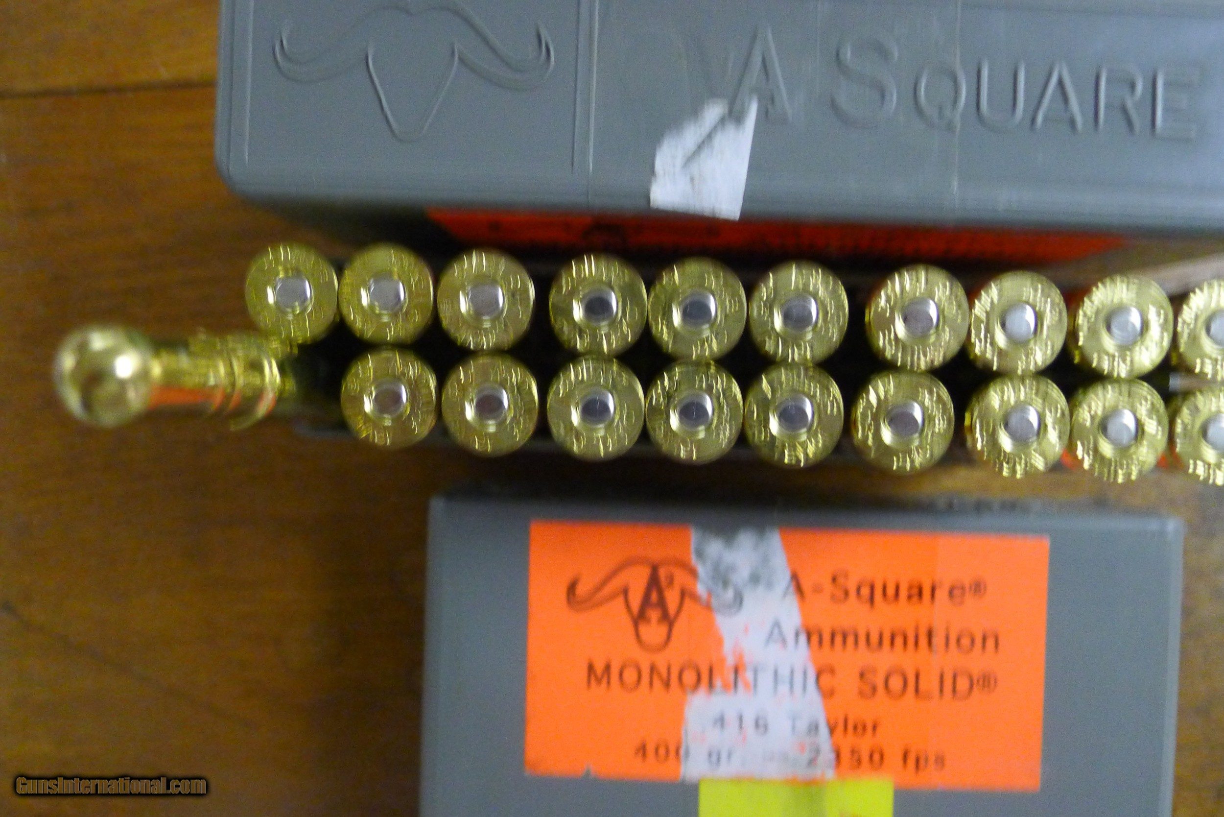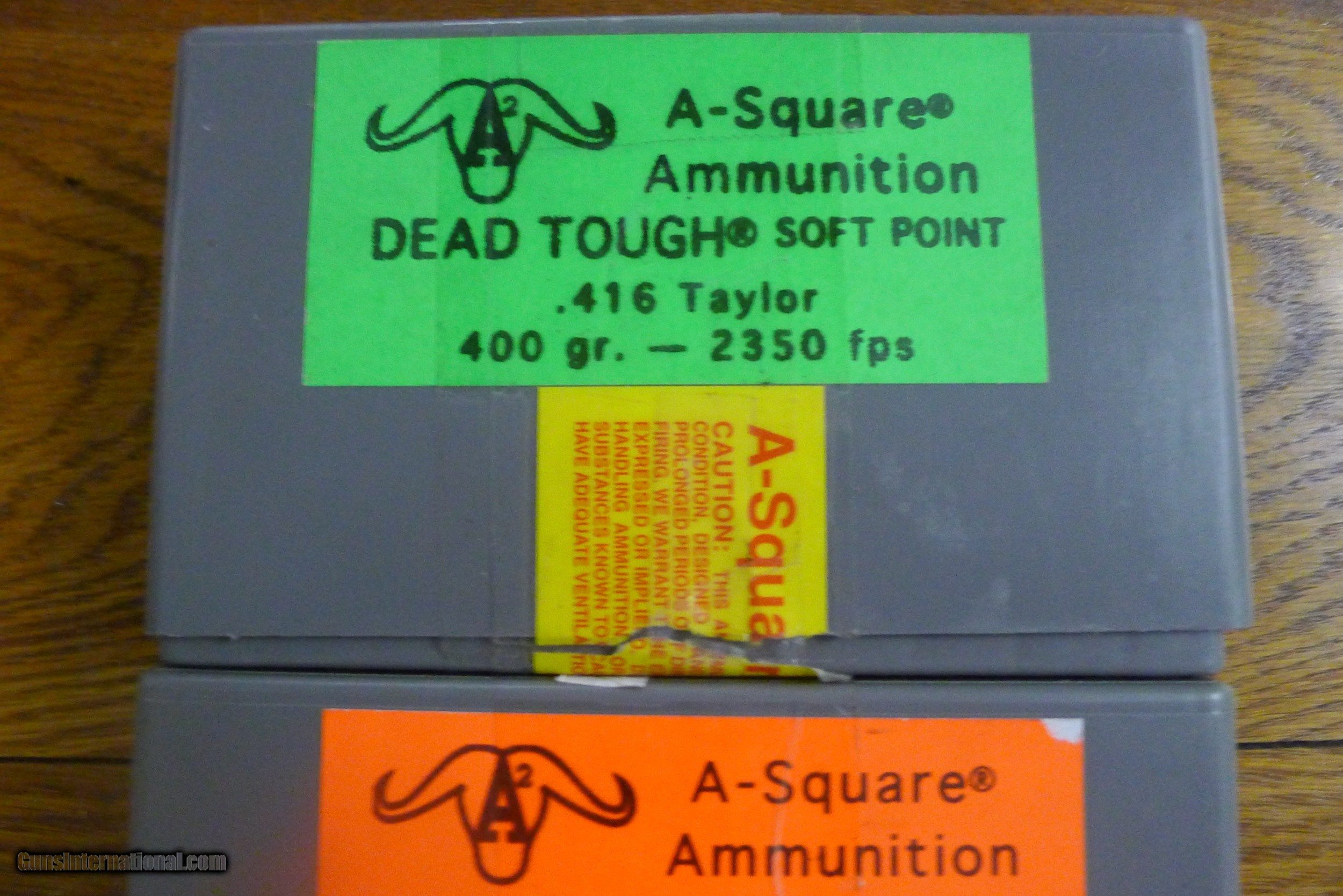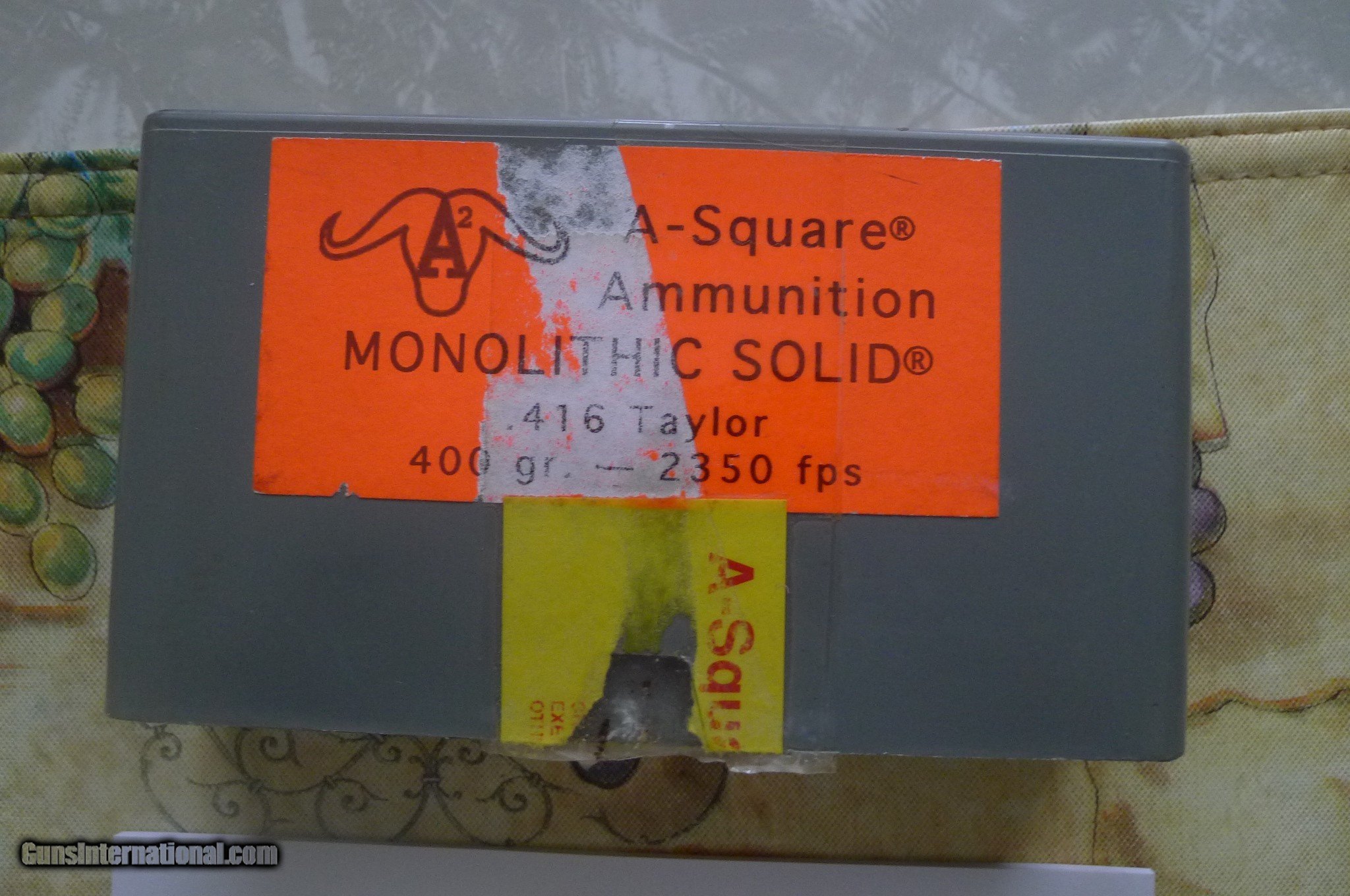 Description: here are three boxes less one round of A SQUARE DAMGEROUS GAME BULLETS. ALL THREE BOXES ARE 416 TAYLOR. Two of the boxes less one round are 400 GR. MONOLITHIC SOLIDS the other box is 400 GR. DEAD TOUGH SOFT POINT. all loaded to 350 fps.. See photos. SHIPPING WILL BE UNDER UPS GROUND 48 CONINIOUS STATE .S.SUBJECT TO UPS STANDARD SHIPPING REQUIREMENTS WILL QUOTE SHIPPING FIGURES WHEN AMOUNT IS DTERMINED NO INTERNATIONAL SALES SOLD TO JASON ALAMO PENDING FUNDS SOLD |