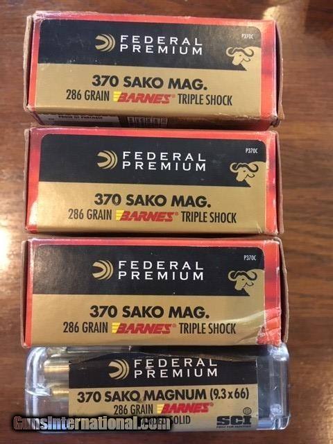Description: Federal Premium 370 Sako Mag 3 boxes 286 Gr Barnes Triple Shock, 1 box 286 Gr Banded Solid All four boxes $120 plus shipping Call 703-554-2797 SOLD |