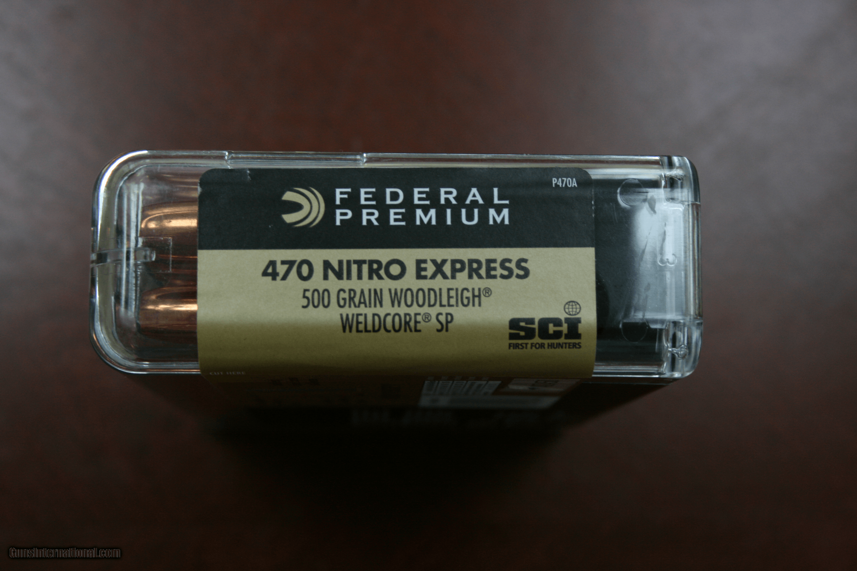 Description: Federal Premium 470 Nitro Express 500 Grain Woodleigh Welcore SP 8 boxes, factory sealed $125.00 per box, shipped REDUCED to $120.00 shipped Rob 516 404 8336 SOLD Rifle Caliber: .470 Nitro Express |
