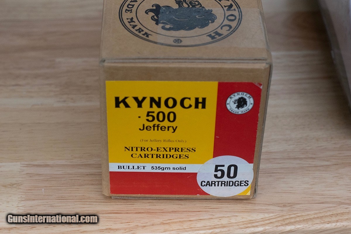 Description: New, unopened case of Kynoch 500 Jeffery ammo. Will include shipping to continenal United States.