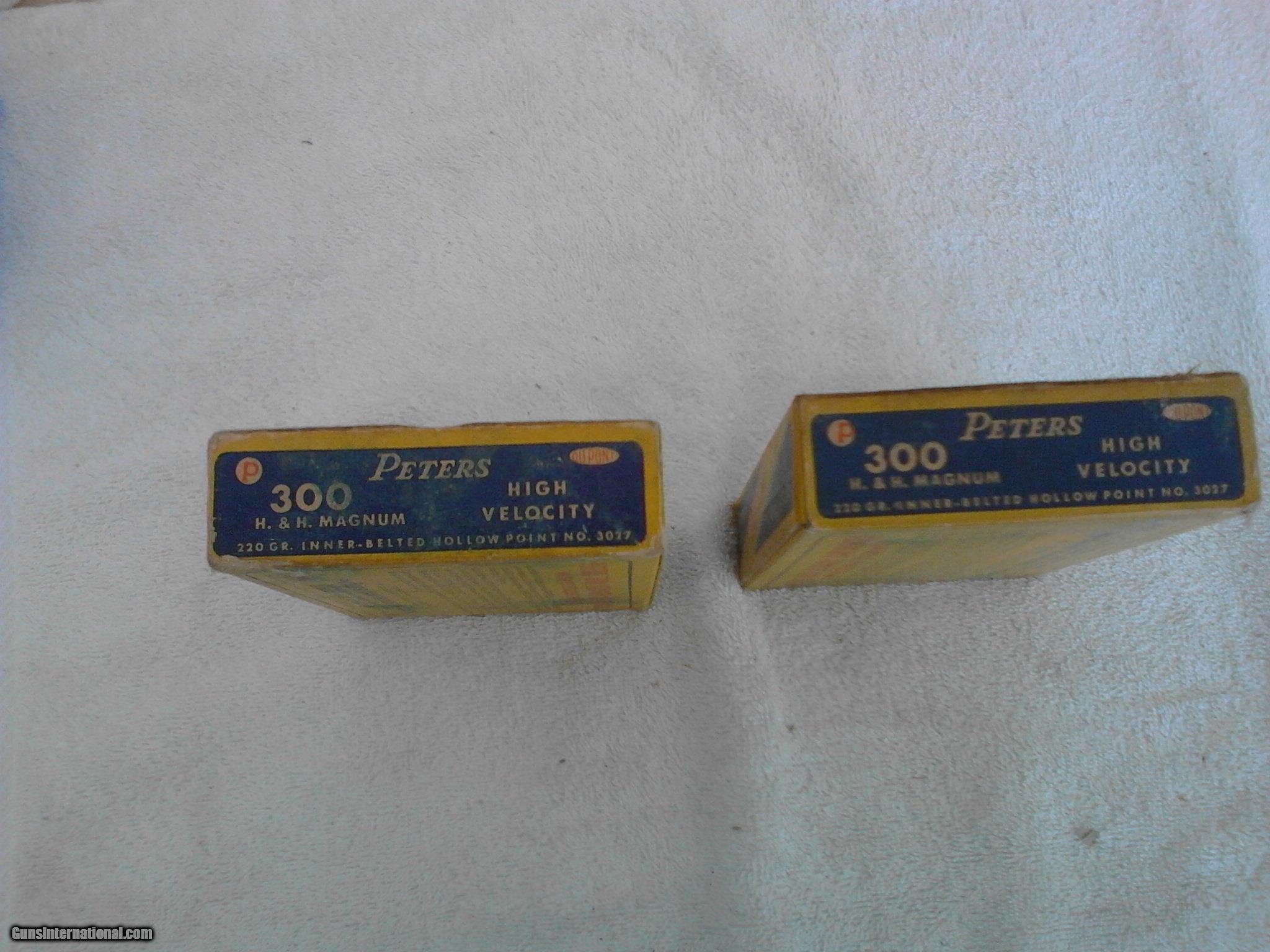 Description: 2 boxes of Peters 300 H&H ammunition in very good shape. SOLD |