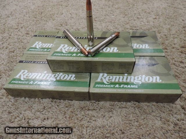 Description: PREMIER A-FRAME,300GRAIN SWIFT A-FRAME PSP, 20RD BOX,, FIVE 5 BOXES, $89.00 / BOX, TOTAL = $445.00 FREE SHIPPING NO CARD FEES SOLD Rifle Caliber: .375 H&H Magnum |