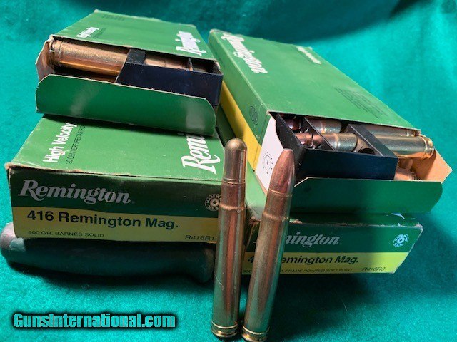 Description: Remington 416 - 4 new boxes. $250.00 plus shipping. For more information please call Rick at 973-478-5066. SOLD |