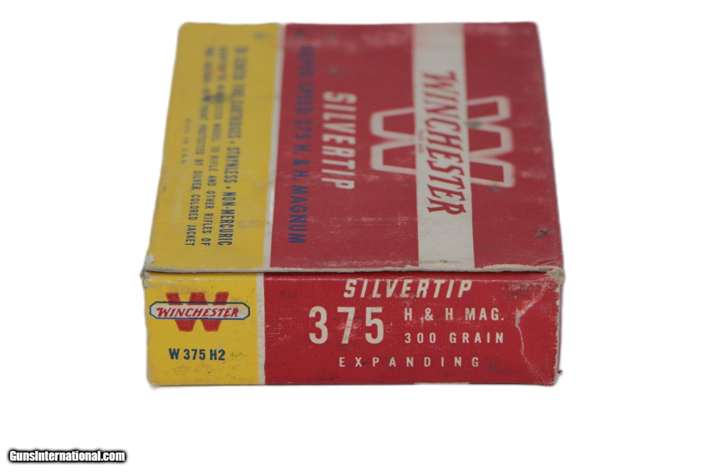 Description: Winchester, Super Speed, 375 H&H, 300 Grain Expanding, Silvertip, 20 Exc Factory Rounds. W375H2 Box is VG with Scuffs, edge and corner wear. Add $17.50 S+H SOLD |
