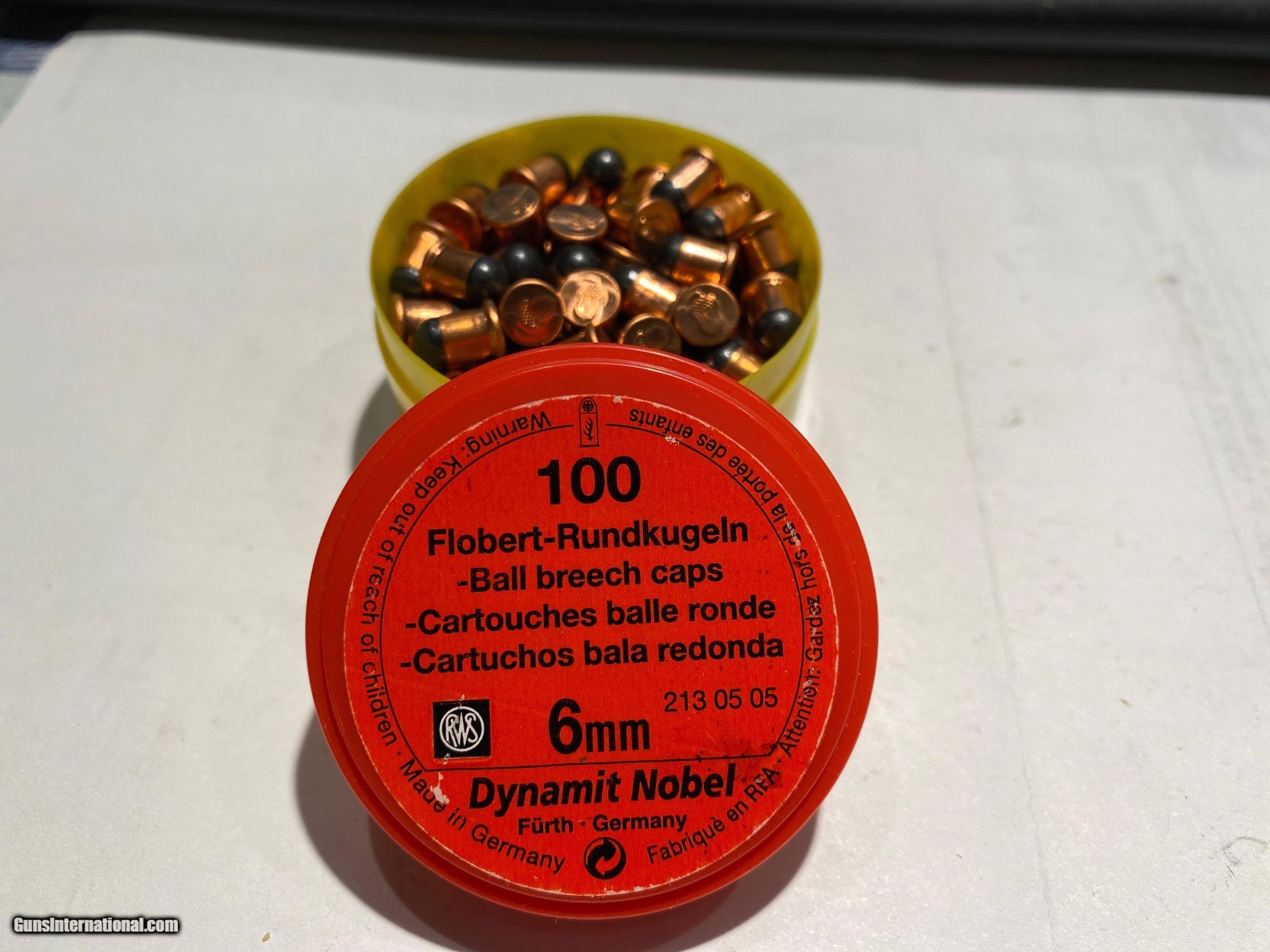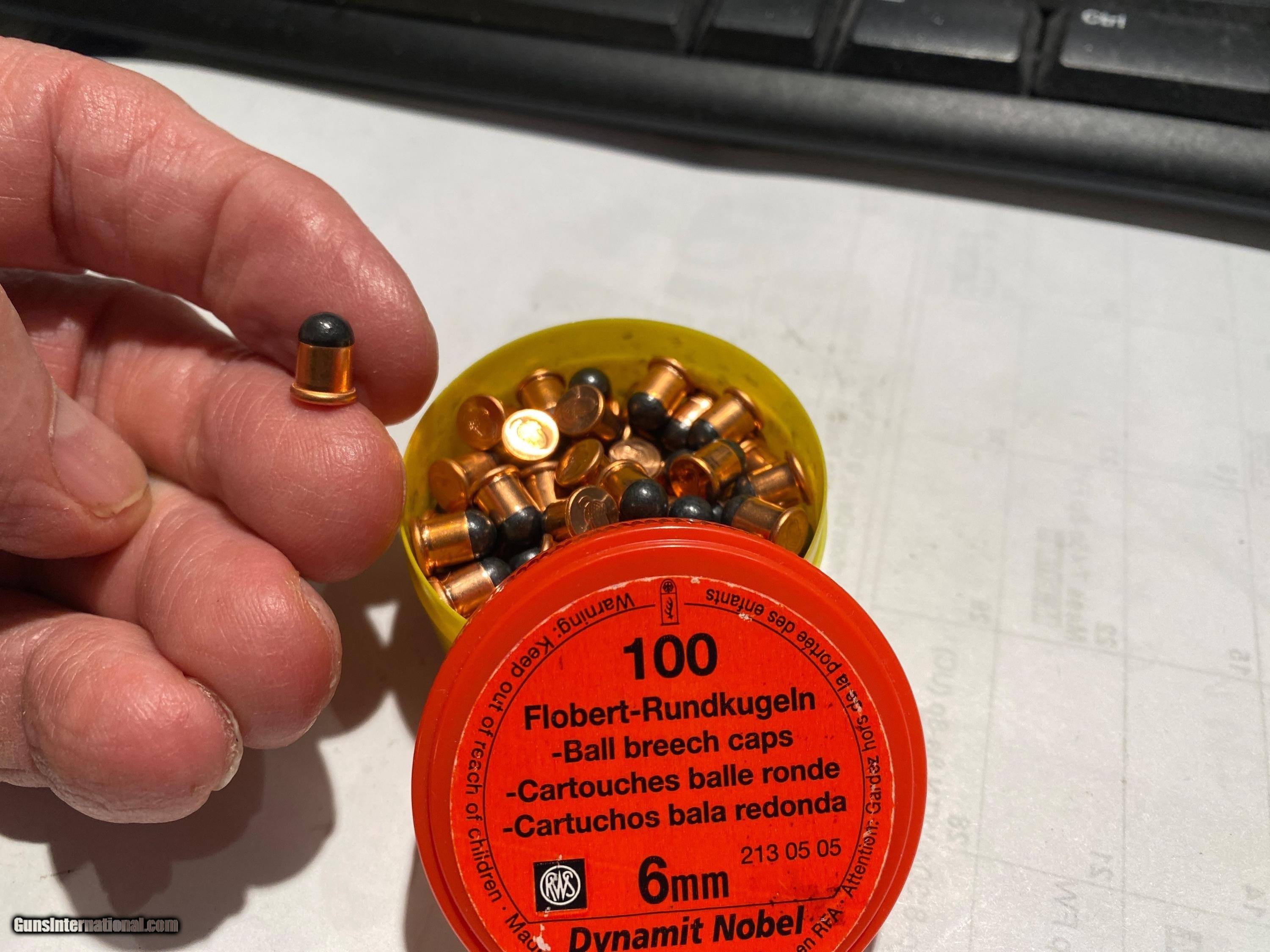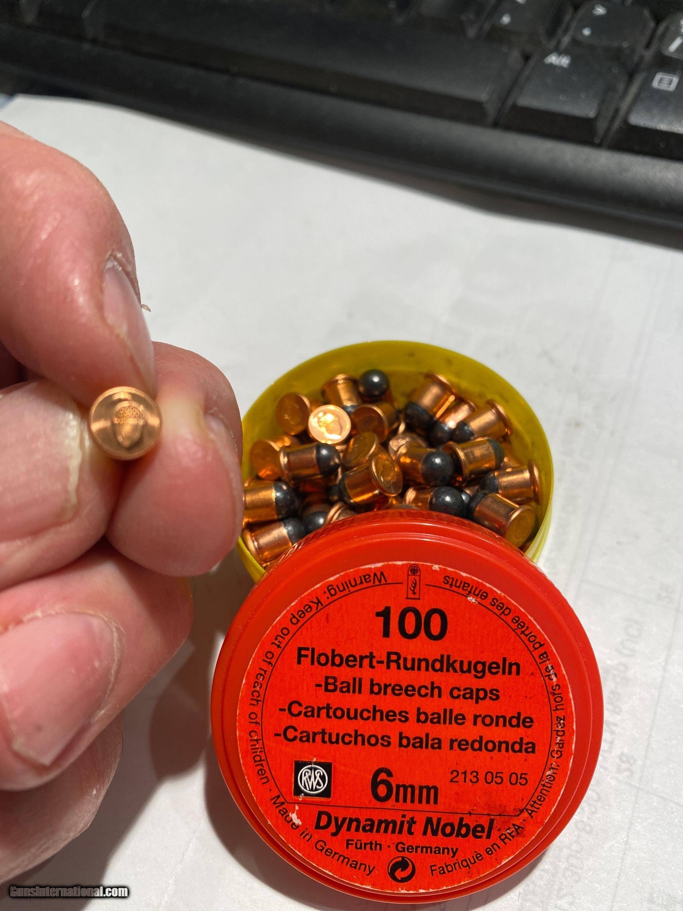 Description: 6mm mini ball caps for Flobert and other gallery rifles and pistols. Made in Germany for indoor recreational shooting, which was a favorite pastime 100 years ago. Also will work in any .22 cal rifle or pistol. Great for garden pests. $15.00 shipping, money order, or check. Must be 21 to purchase, mailing ammo prohibited in some states. Know your local laws SOLD Rifle Caliber: .22 BB |