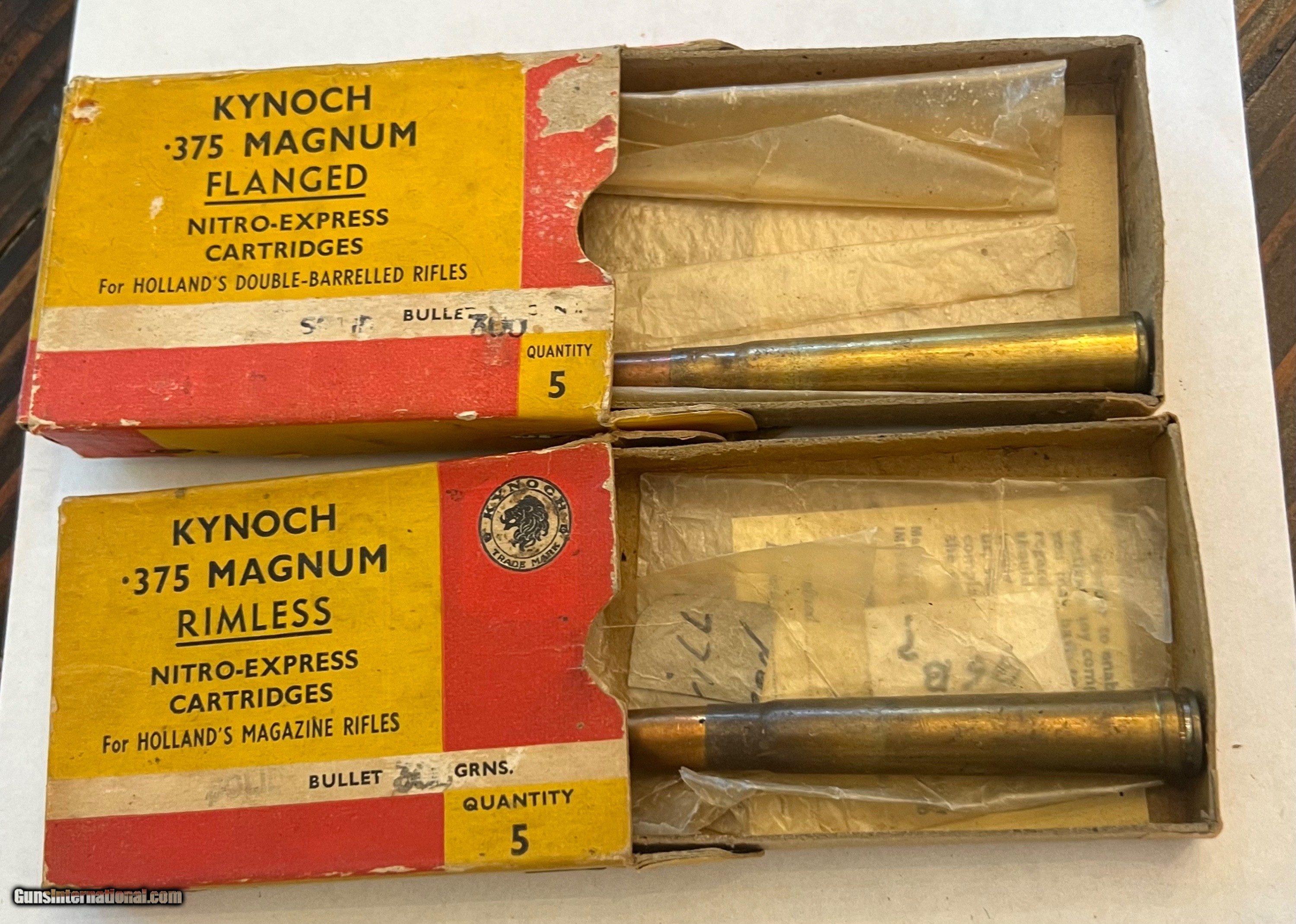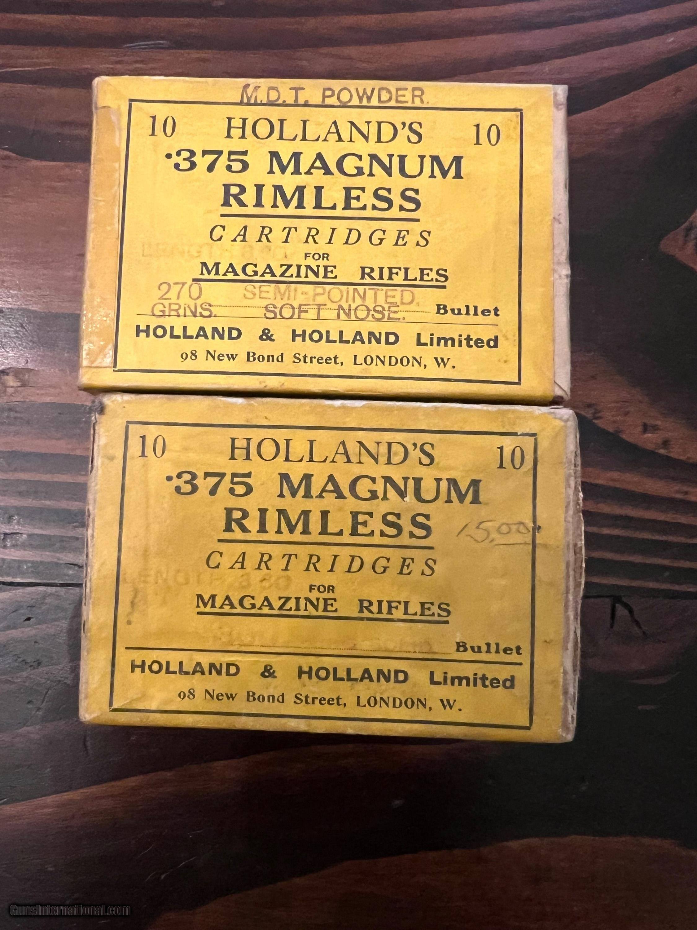 Description: 8 rounds of Holland's 375 magnum rimless 5 rounds 270 grain soft point in one box 3 rounds 300? Grain in the other $100 shipped SOLD Rifle Caliber: .375 H&H Magnum |