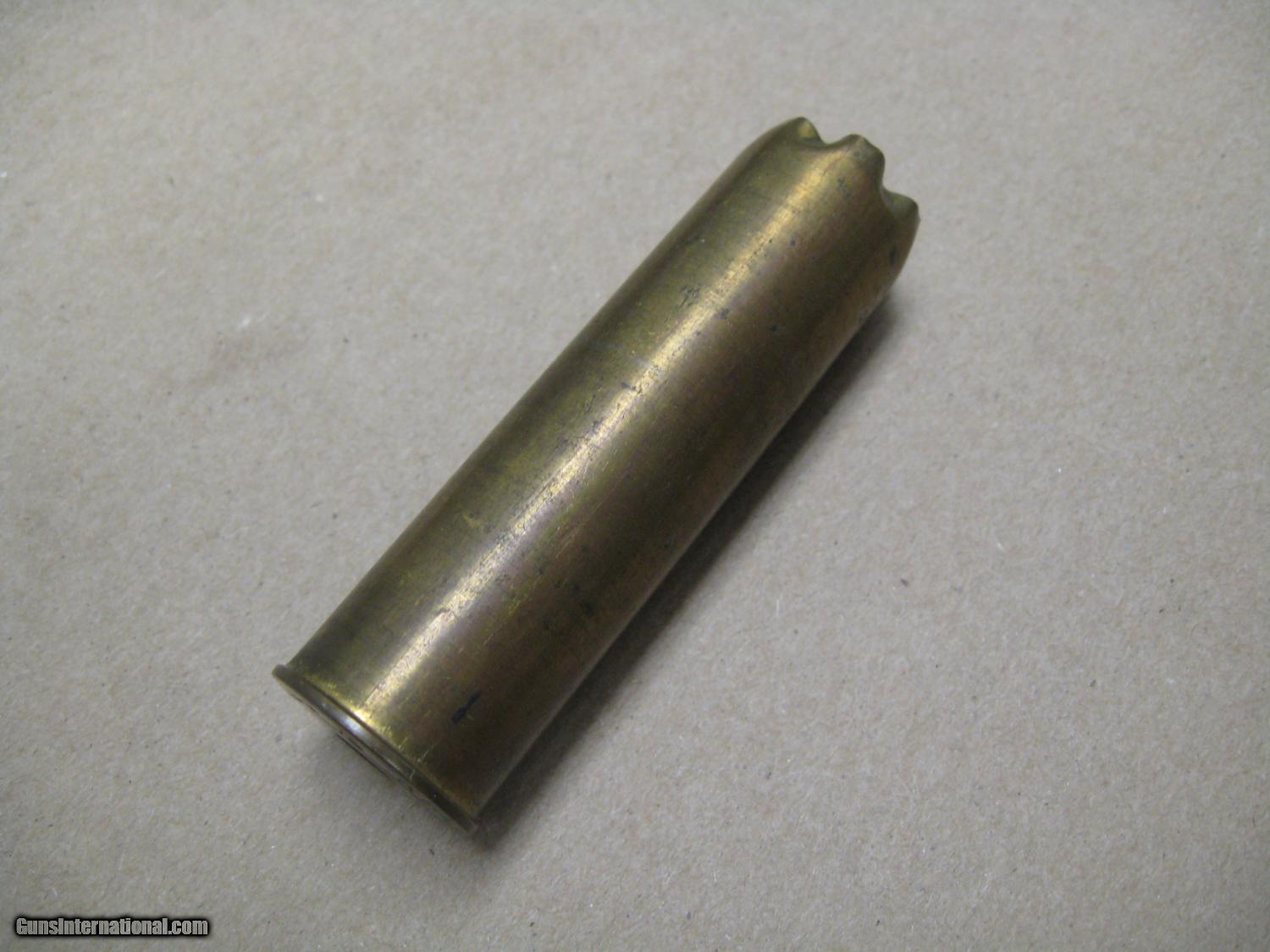 Description: A Knoch 10 Bore Brass Paradox Cartridge. The headstamp has the early Birmingham address. A very rare brass Paradox cartridge, in excellent condition. SOLD |