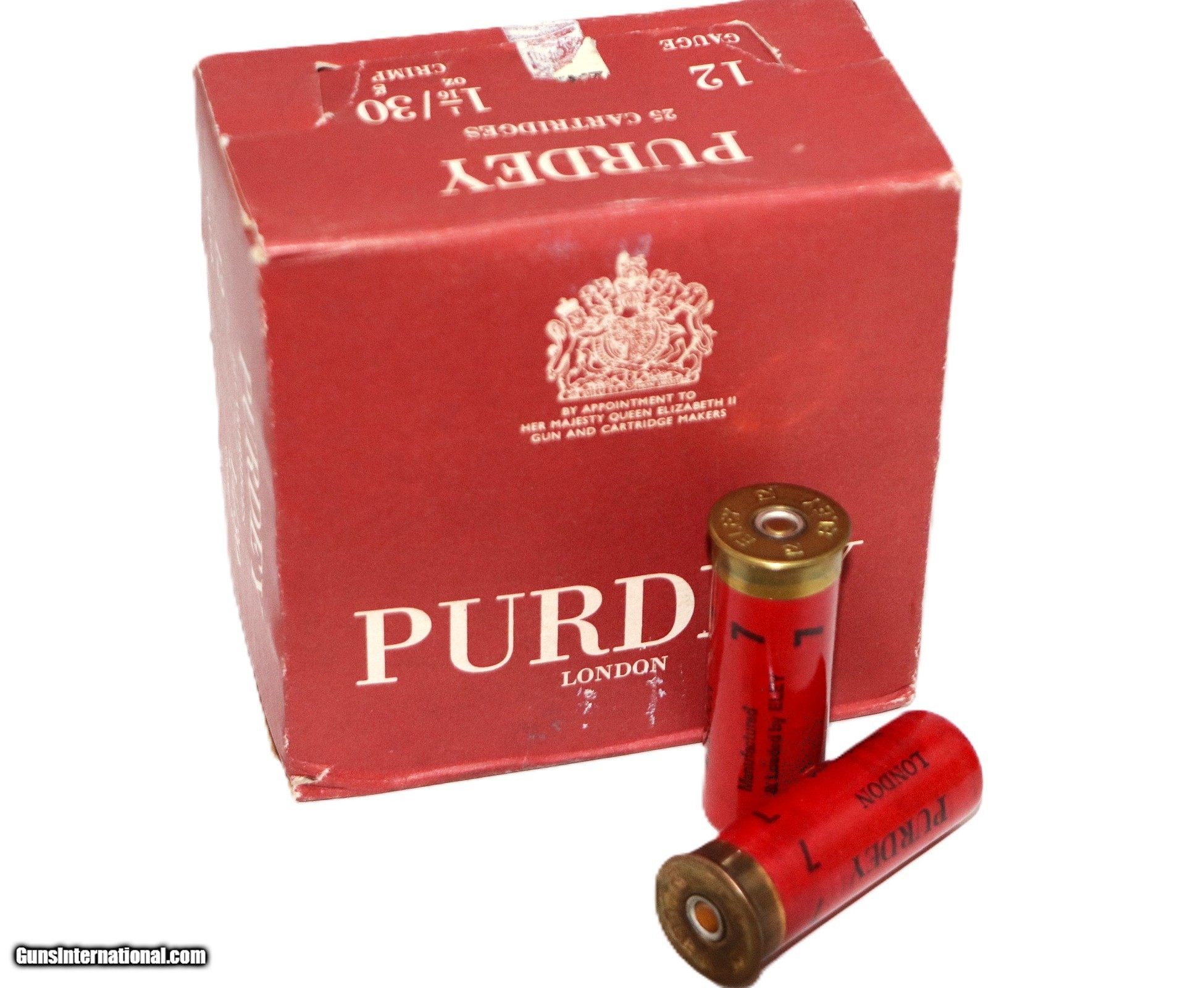 Description: Eley, Purdey London, 12ga., 1pc., Full, shot size 7, box has light edge & corner wear, paper shells are mint. Shotgun Gauge: 12 Gauge Price: $120.00 Contact Seller |