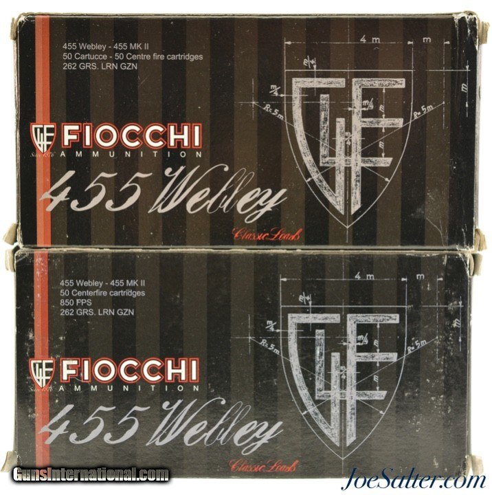 Fiocchi 455 Webley MKII 262gr. LRN GZN NOS 100 Rounds