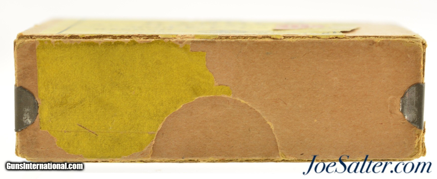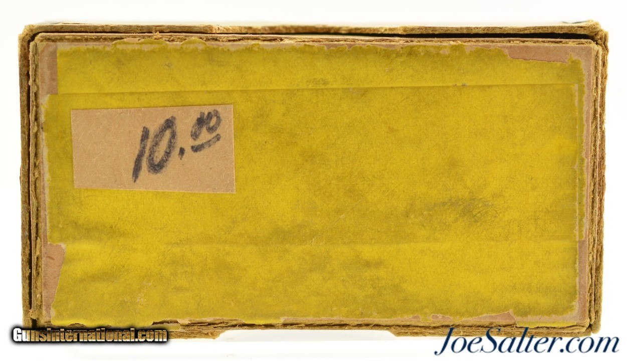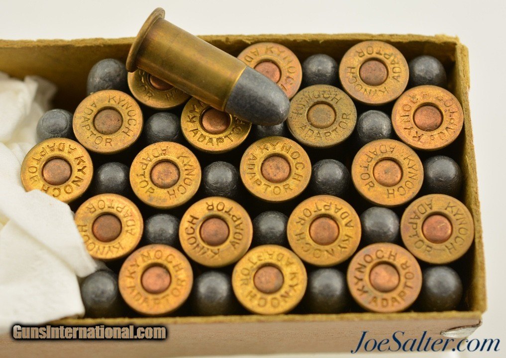 Description: This is a partial box, 38 original rounds, of .303 adaptor ammunition manufactured by Kynoch for the Kynoch adaptor enabling one to fire a small pistol cartridge in a .303 British rifle. The rimmed center fire cartridges are head stamped Kynoch Adaptor. The two piece box has a mostly intact yellow label showing the Kynoch Lion logo with a partial red, gold and white smokeless powder over-label. A scarce partial box of Kynoch's solution for less expensive and less powerful training and practice ammunition. Price: $95.00 Contact Seller |