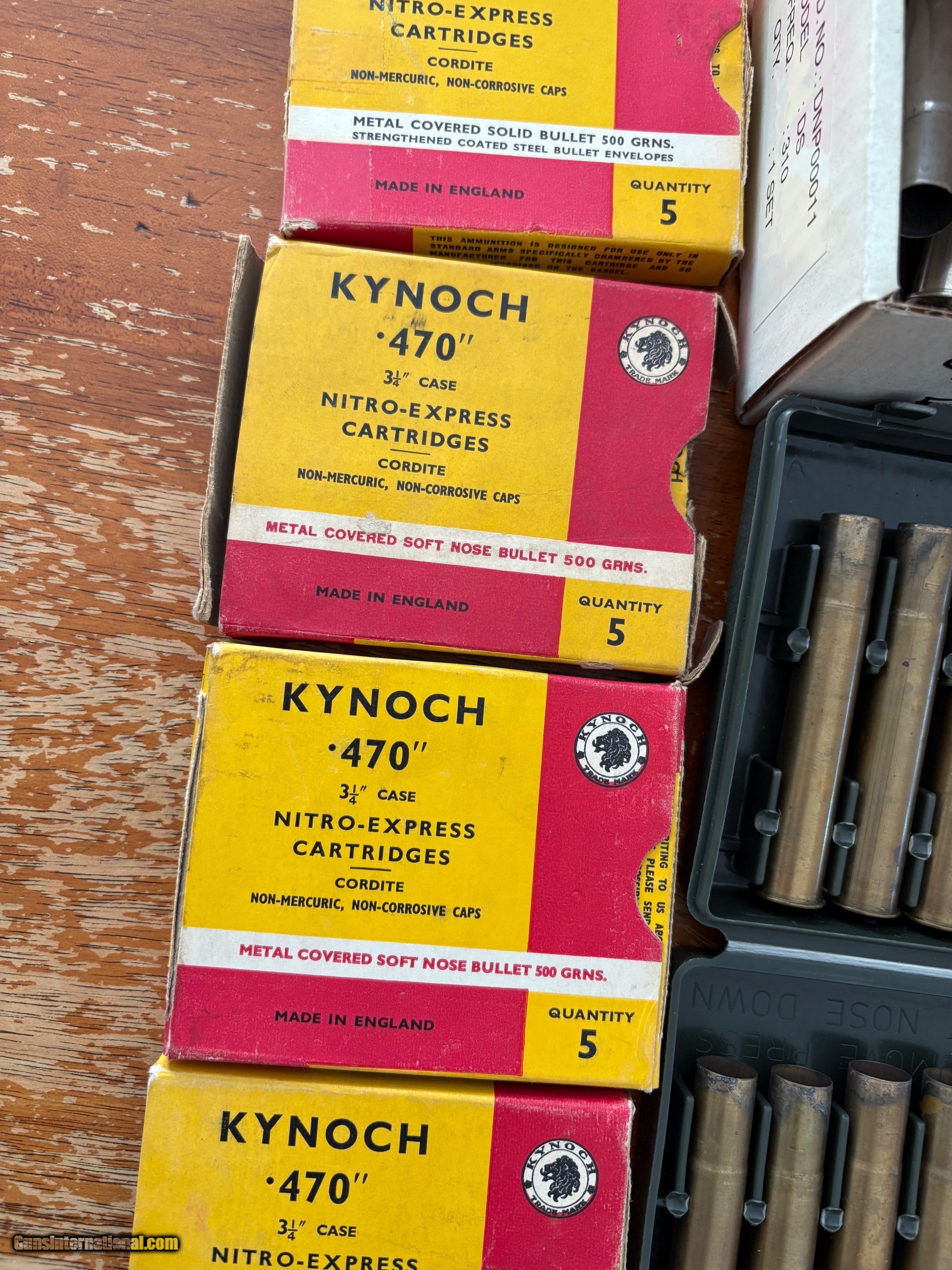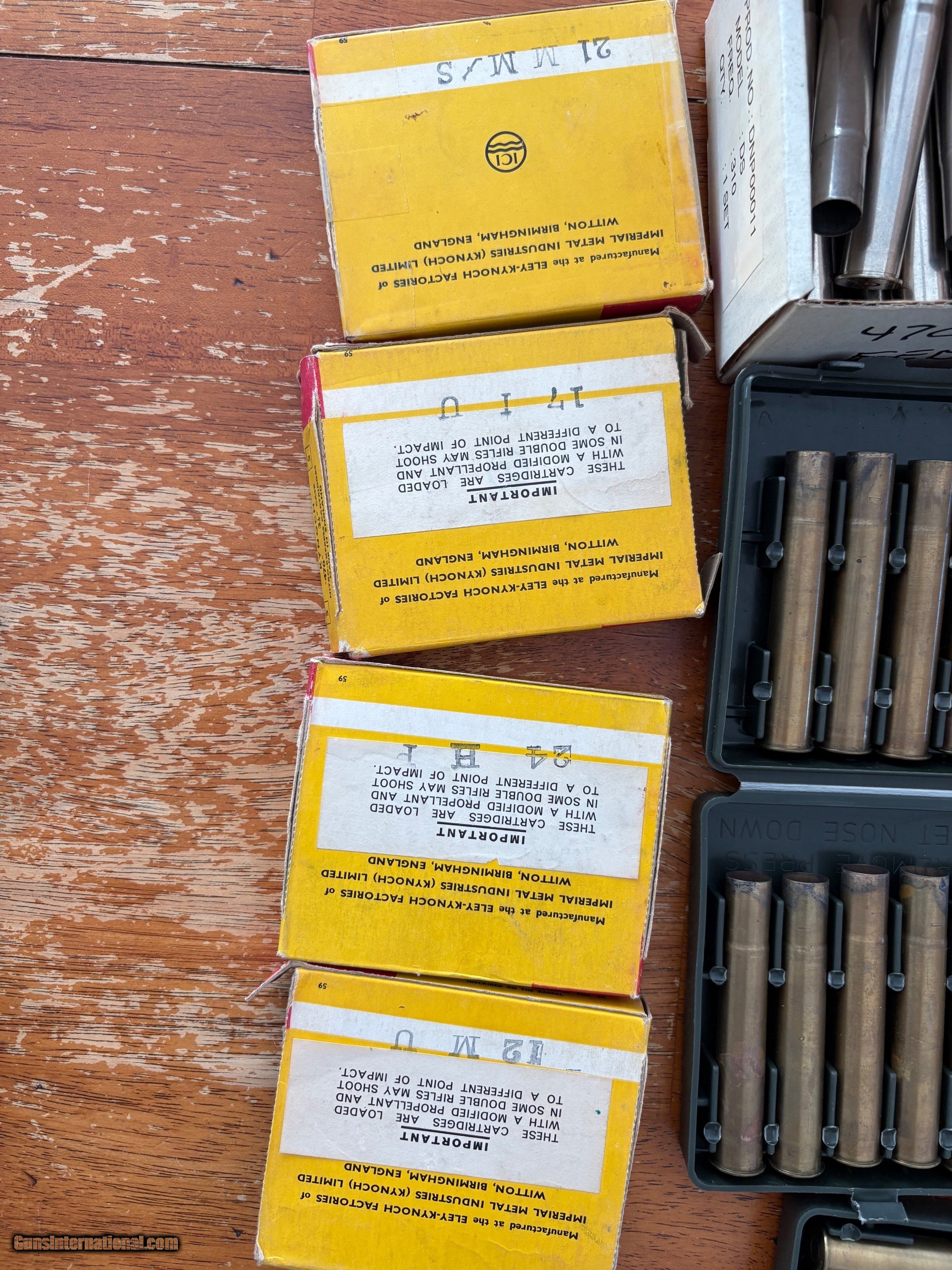 Description: 470 Nitro RELOADS and empty brass, for sale as a lot. Pics should show pretty much what is included. Kynoch paper boxes are empty.WR box has fired brass. Shipping on your dime. Price: $300.00 Contact Seller |