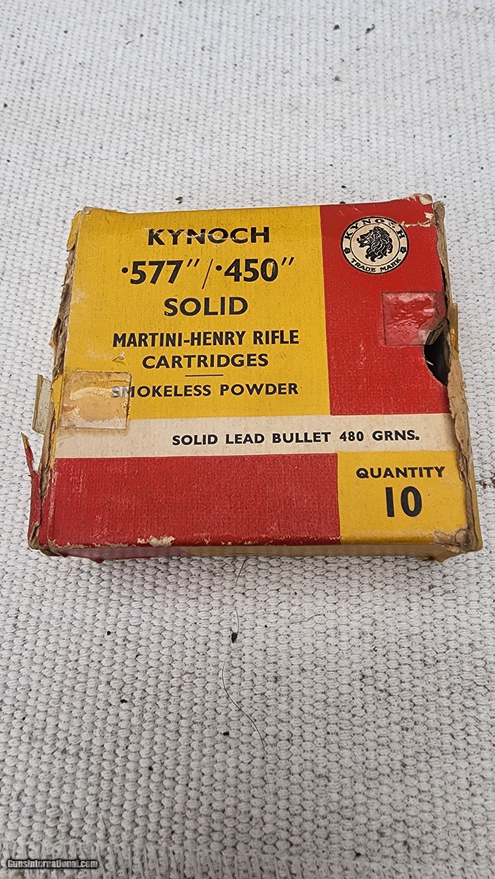 Kynoch 577/450 Martini-Henry Rifle Ammo 10 Rds SOLID 480 Grains