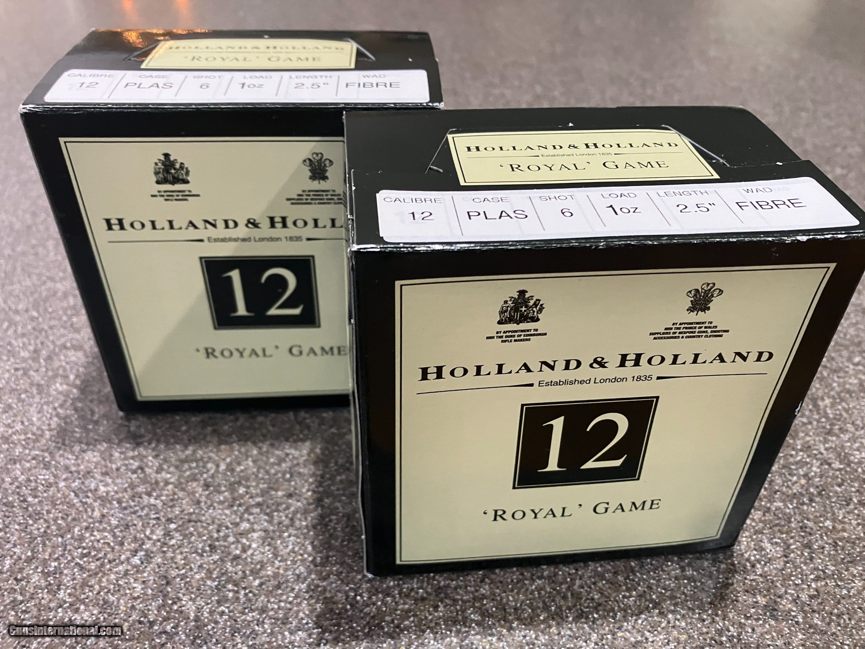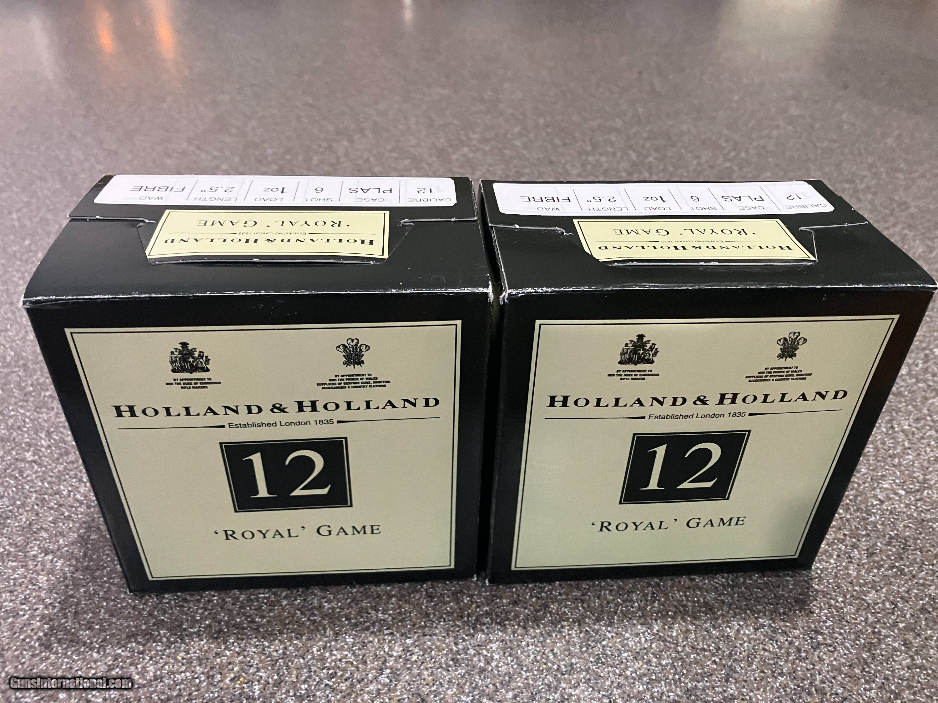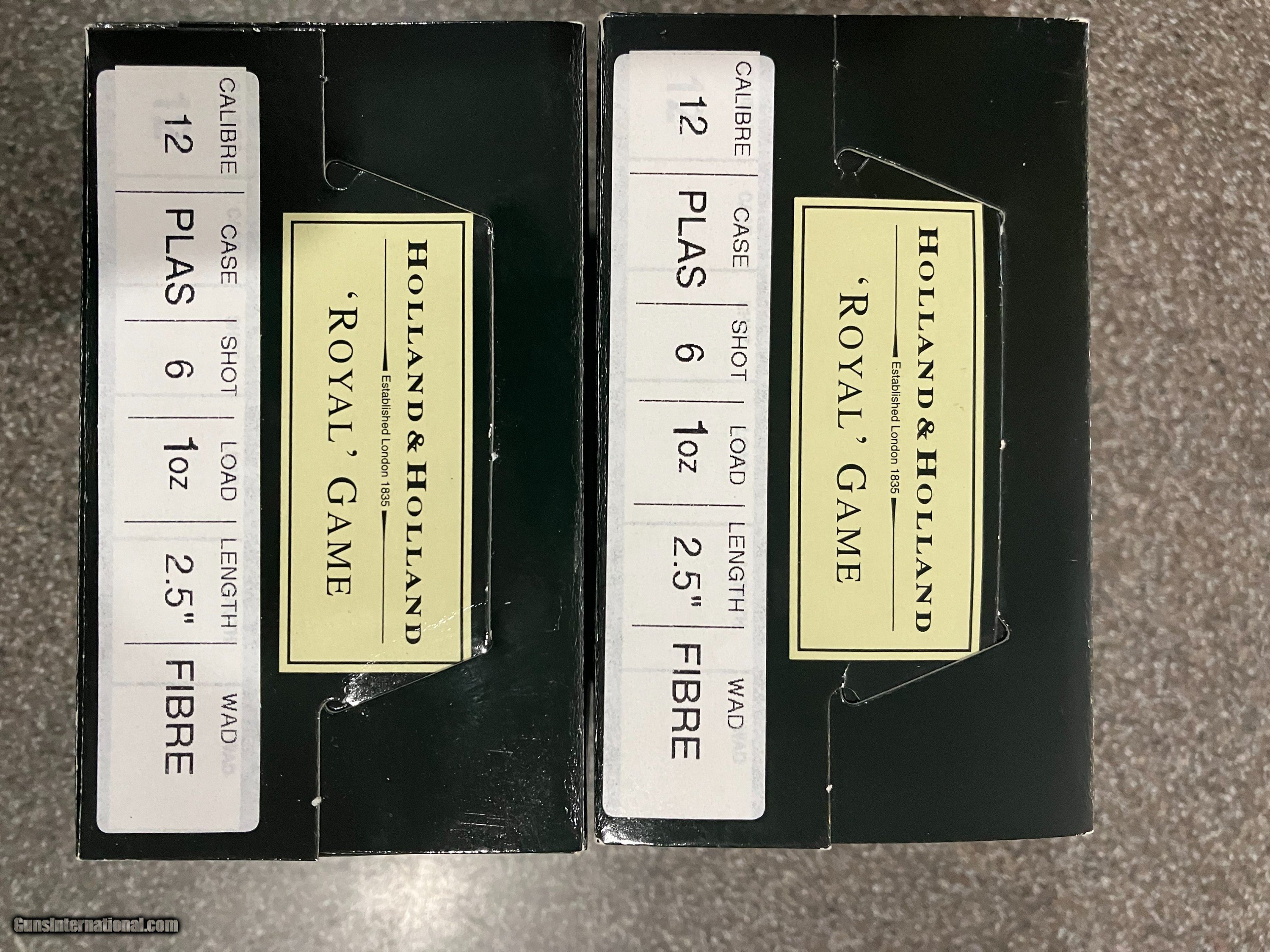 Holland & Holland 12 Bore 2.5 inch shotgun shells 2 boxes of 25 each. Made in England 1oz #6 shot