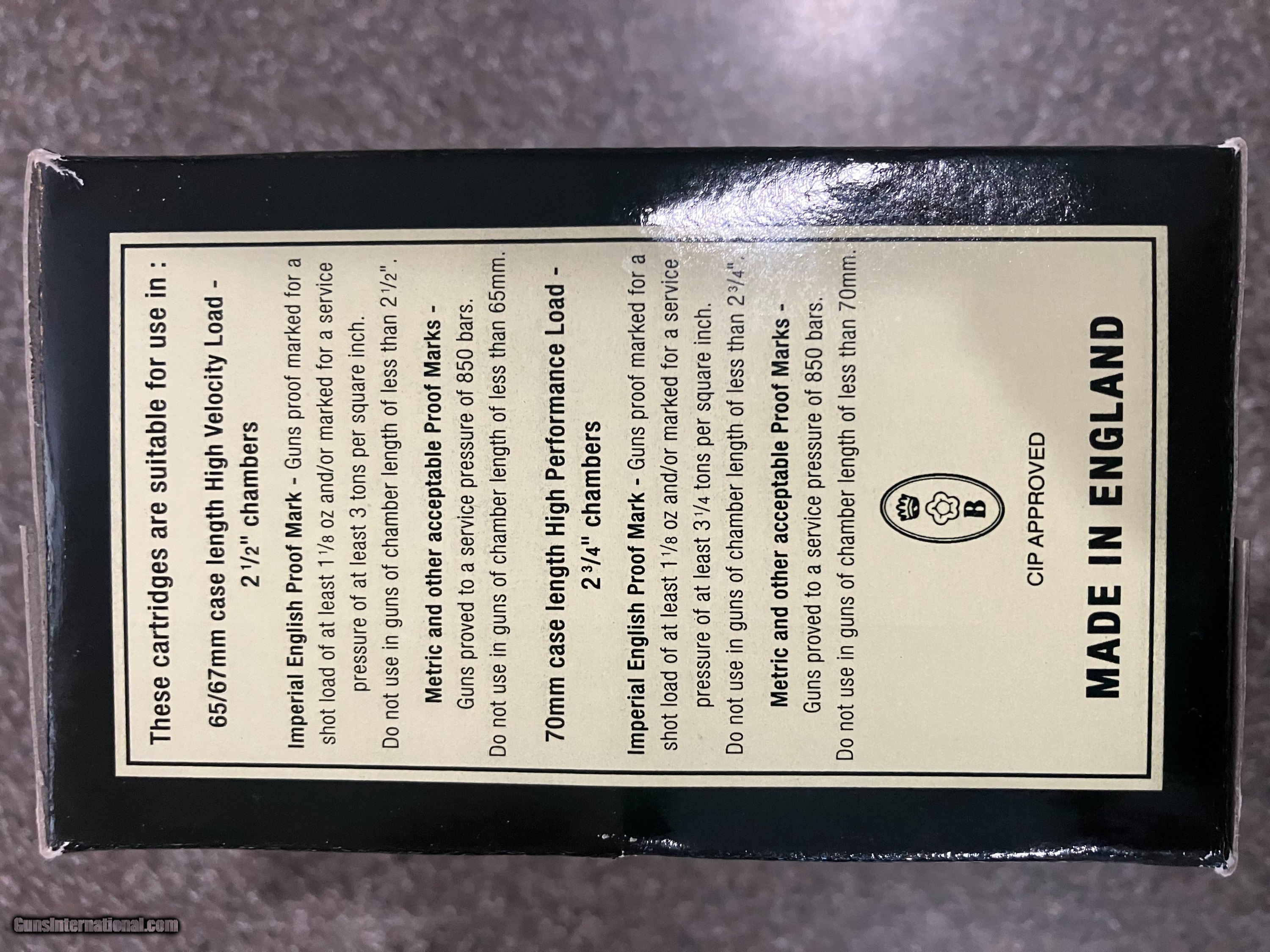 Description: Holland & Holland 12 Bore (12 Gauge) 2.5 inch shotgun shells 2 boxes of 25 each. Made in England and imported for a very short time. One ounce loads of # 6 shot with fiber wads and plastic cases. New in the box. No more of these will be imported into the U.S. Have not been any imported for at least the last 5 years. I purchased these 6 years ago. $15.00 for shipping to continental U.S only. SOLD Shotgun Gauge: 12 Gauge |