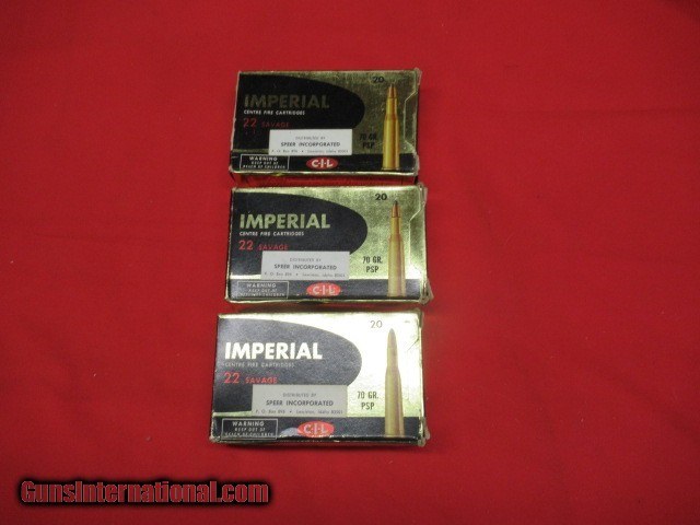 3 Boxes 60 Rds Imperial 22 Savage Factory Ammo