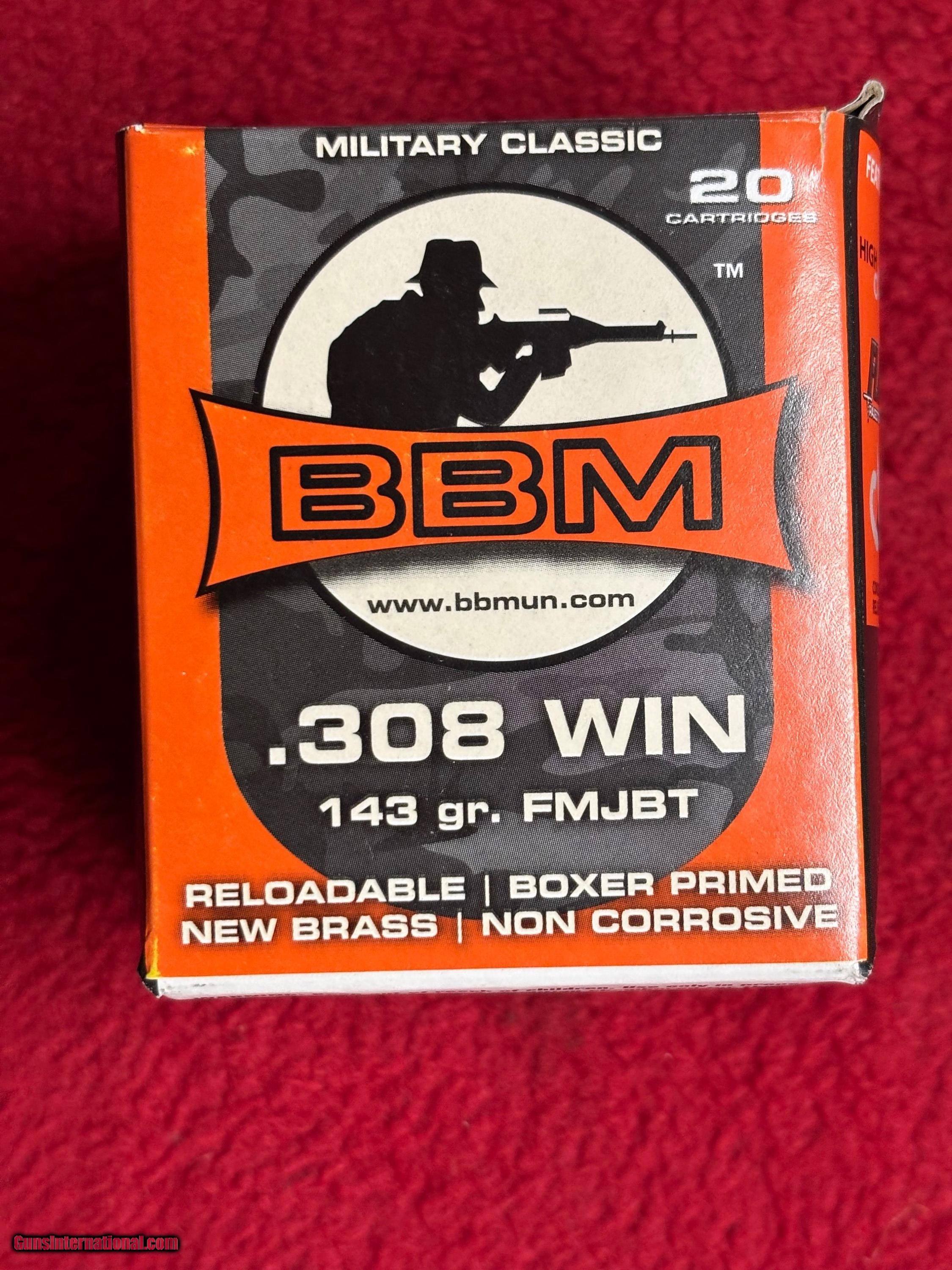 BBM .308 Winchester 143 gr. FMJBT ...........120 Rounds