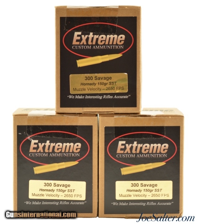 Description: This is three NOS boxes of Extreme Custom Loaded 300 Savage Ammunition 60 rounds 150gr Hornady SST. This is Hornady brass and Hornady SST Bullets. Two of the boxes are still sealed one was opened to take photos. SOLD |