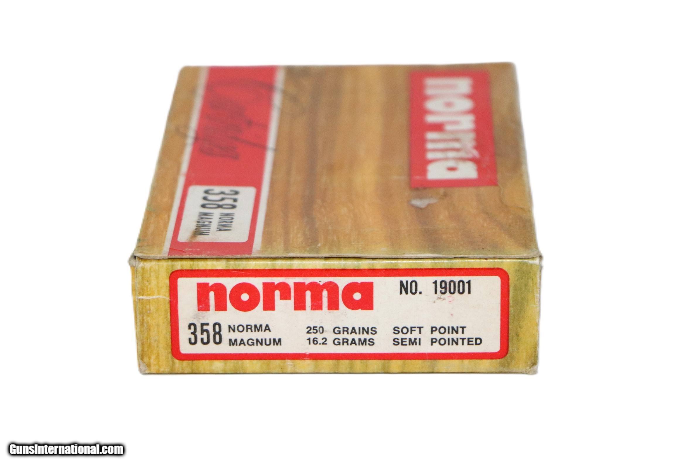 Description: Norma, 358 Norma Magnum, 250 Grain (16.2 Grams), Semi-Ptd, Soft Point - 20 Excellent Rounds. Add 17.50 S+H SOLD Rifle Caliber: .358 Norma Magnum |