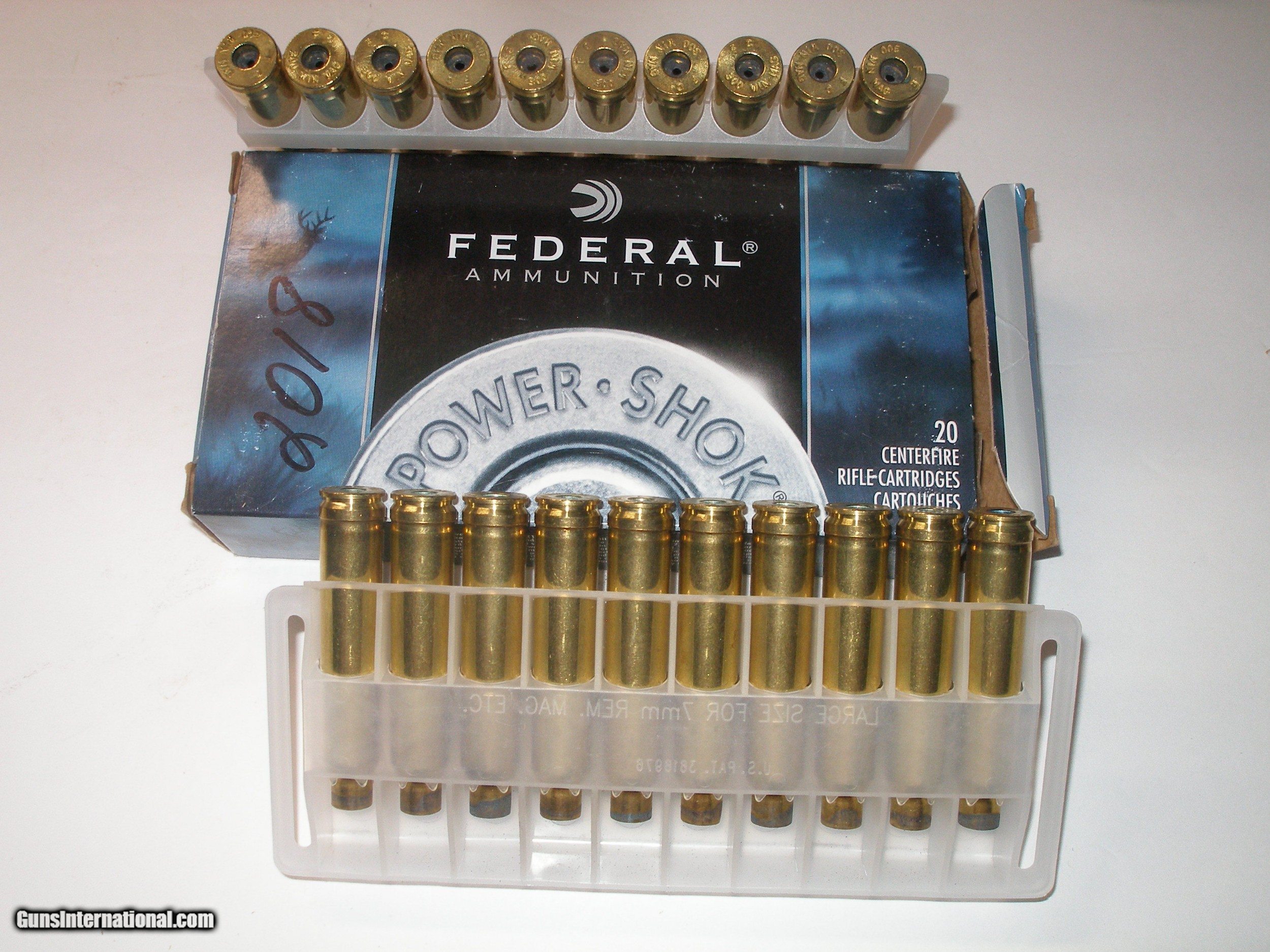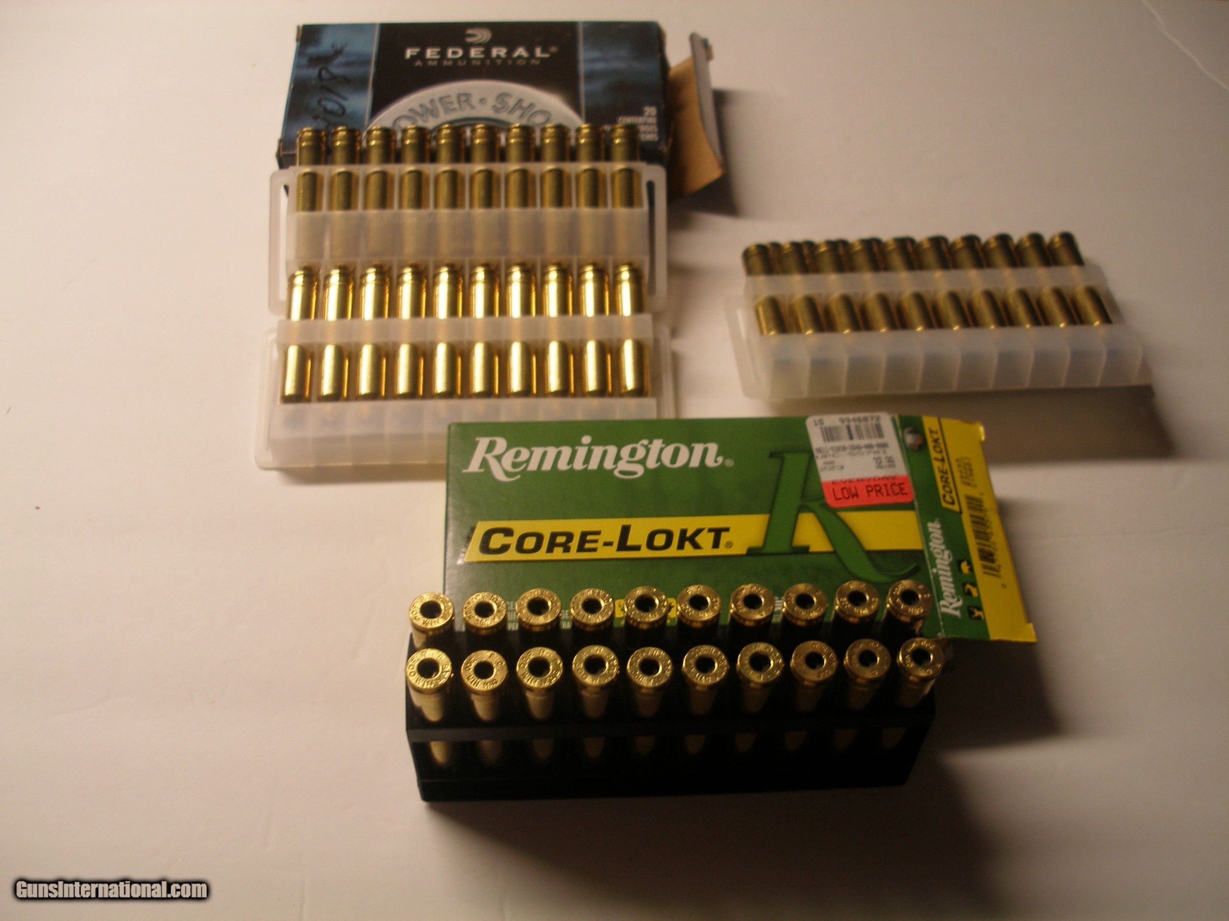 Description: Sixty rounds of once fired .300 Winchester Magnum brass from three years ago. They were deprimed soon after shooting session. Forty rounds are in two boxes and 20 rounds are in the plastic holders only. 20 rounds are Remington and the other 40 are Federal.Since these are empty brass,postal shipping will be $10 plus the price of $54.00 listed.Price reduction : Still $54.00 but will now include shipping where U S small box priority mail will go.! SOLD |