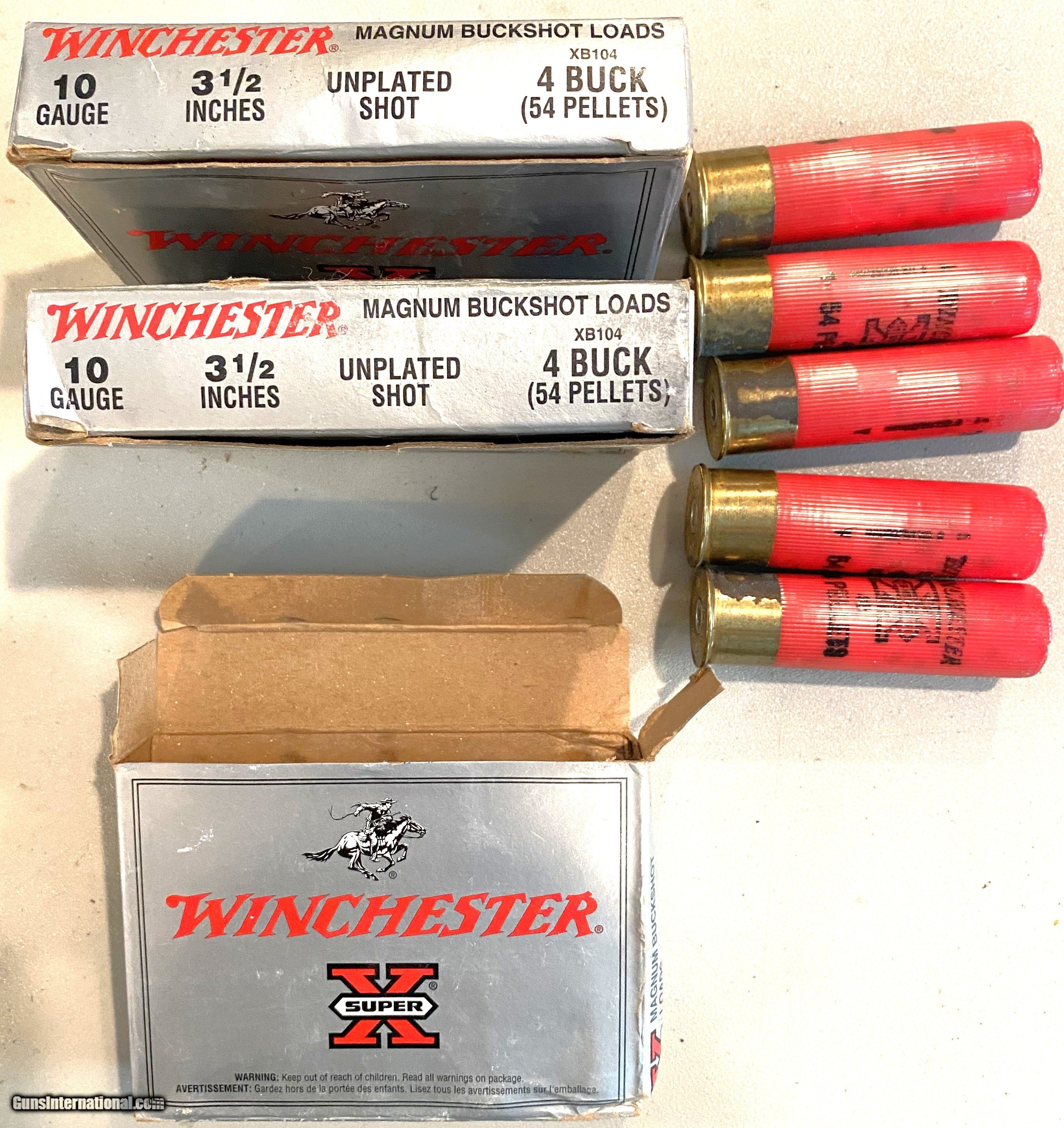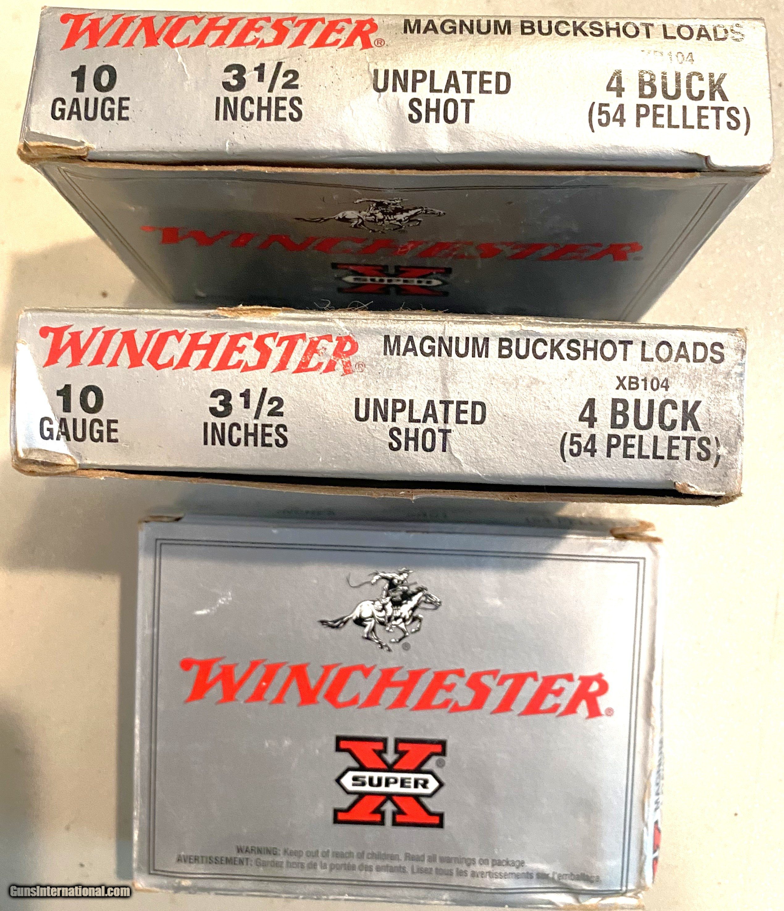 Winchester 10 Gauge, 3-1/2" #4 Buckshot (54 Pellets), 5 Count Boxes