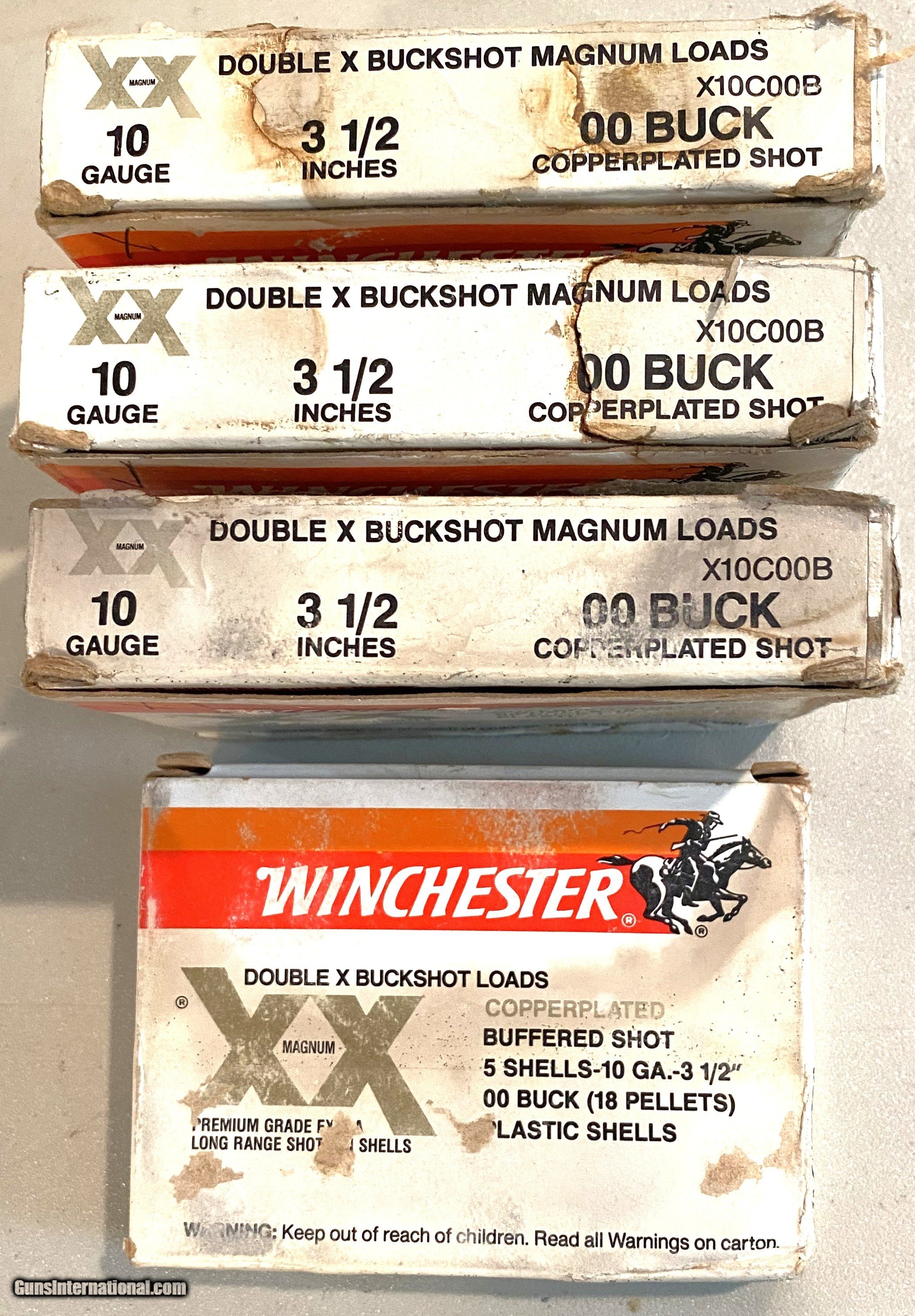 Description: This ammo is from a private collector and a lifetime of collecting. Winchester 10 Gauge 3-1/2" Double X Magnums with 00 Buckshot containing 18 pellets per shell. There are 4 boxes with 5 shells per box. Part of the shells have some corrosion around the brass heads, probably from being stored in humid conditions. All appear to be working condition. Shotgun Gauge: 10 Gauge Price: $75.00 Buy Now Contact Seller |